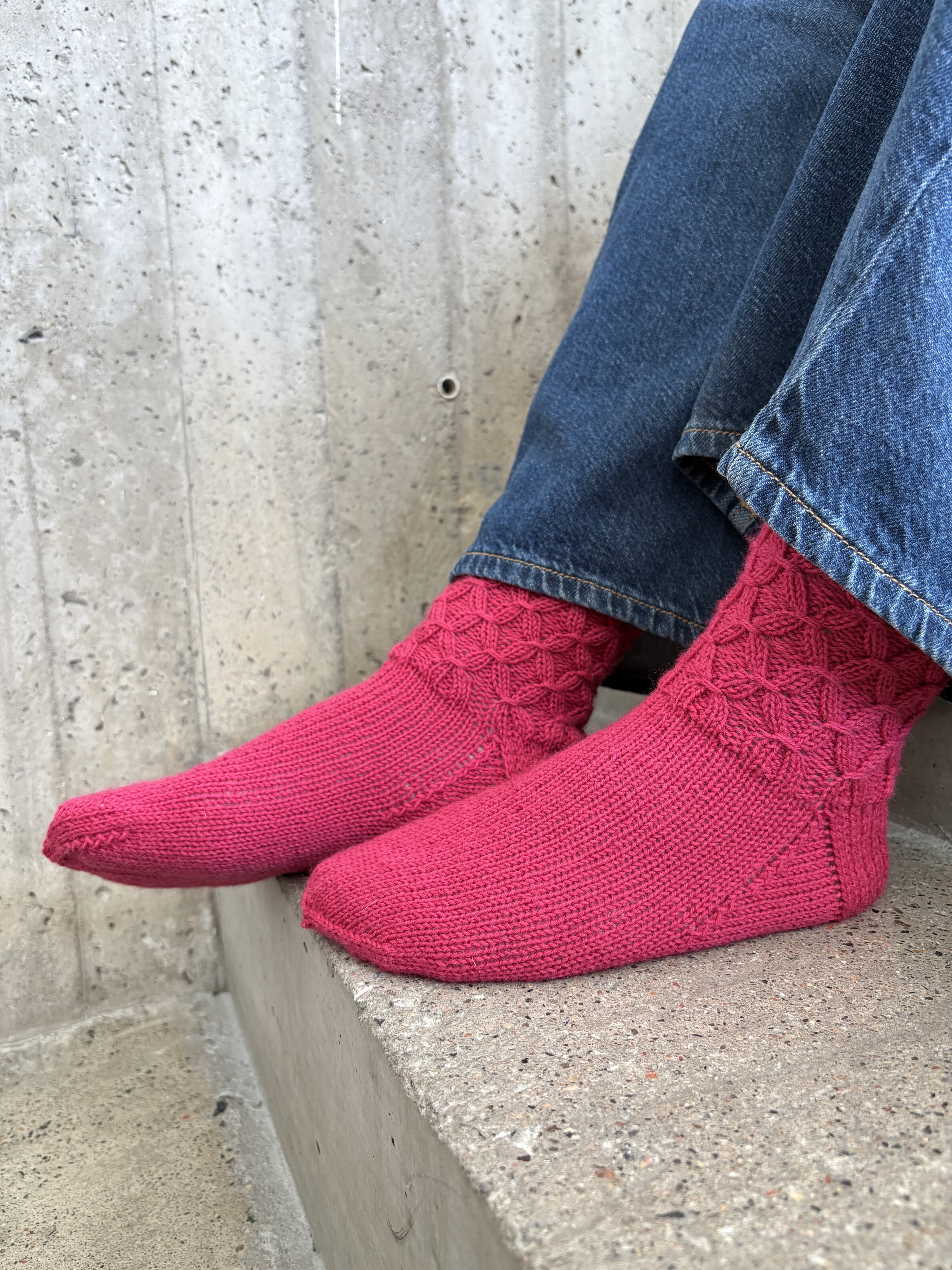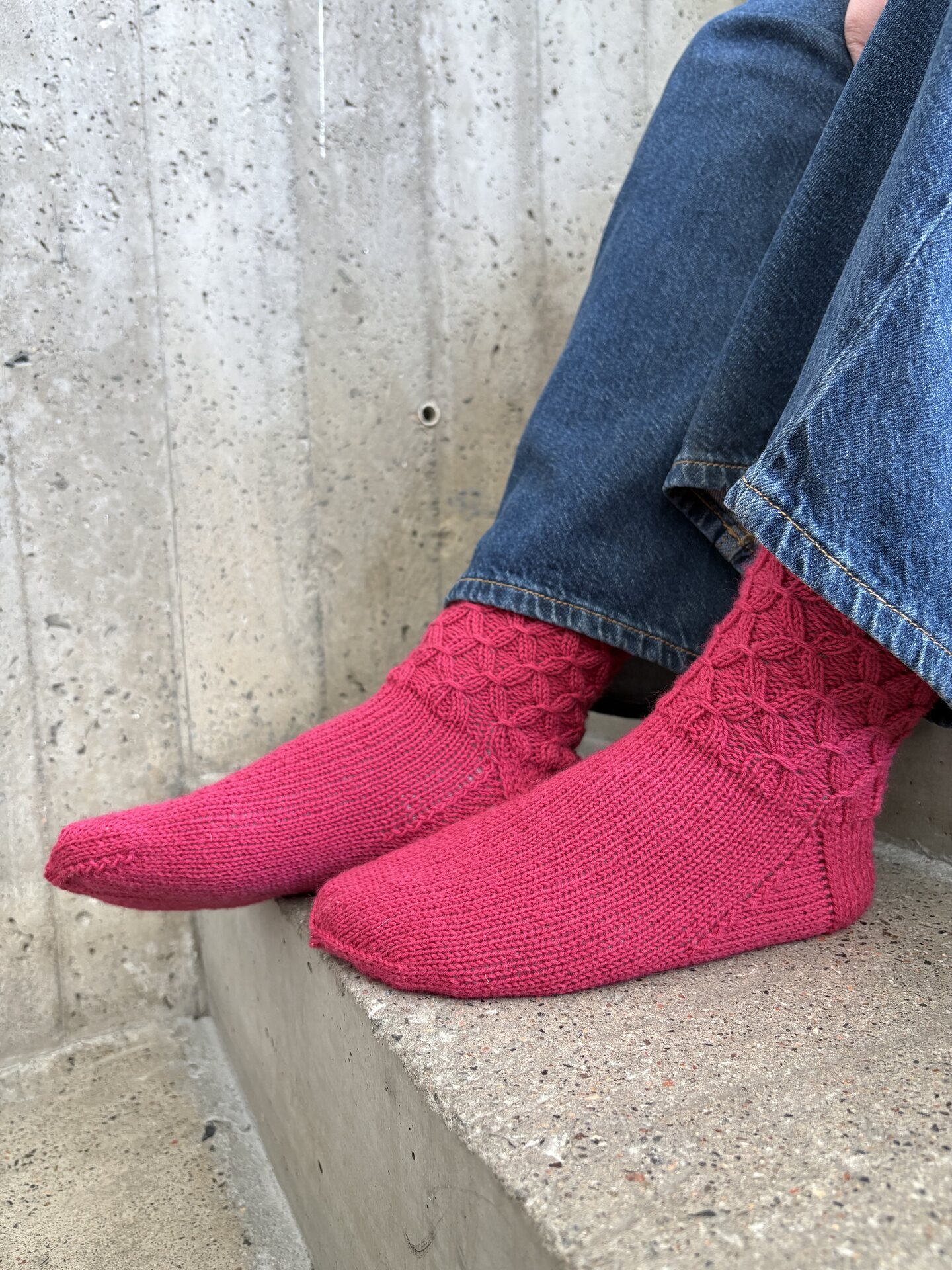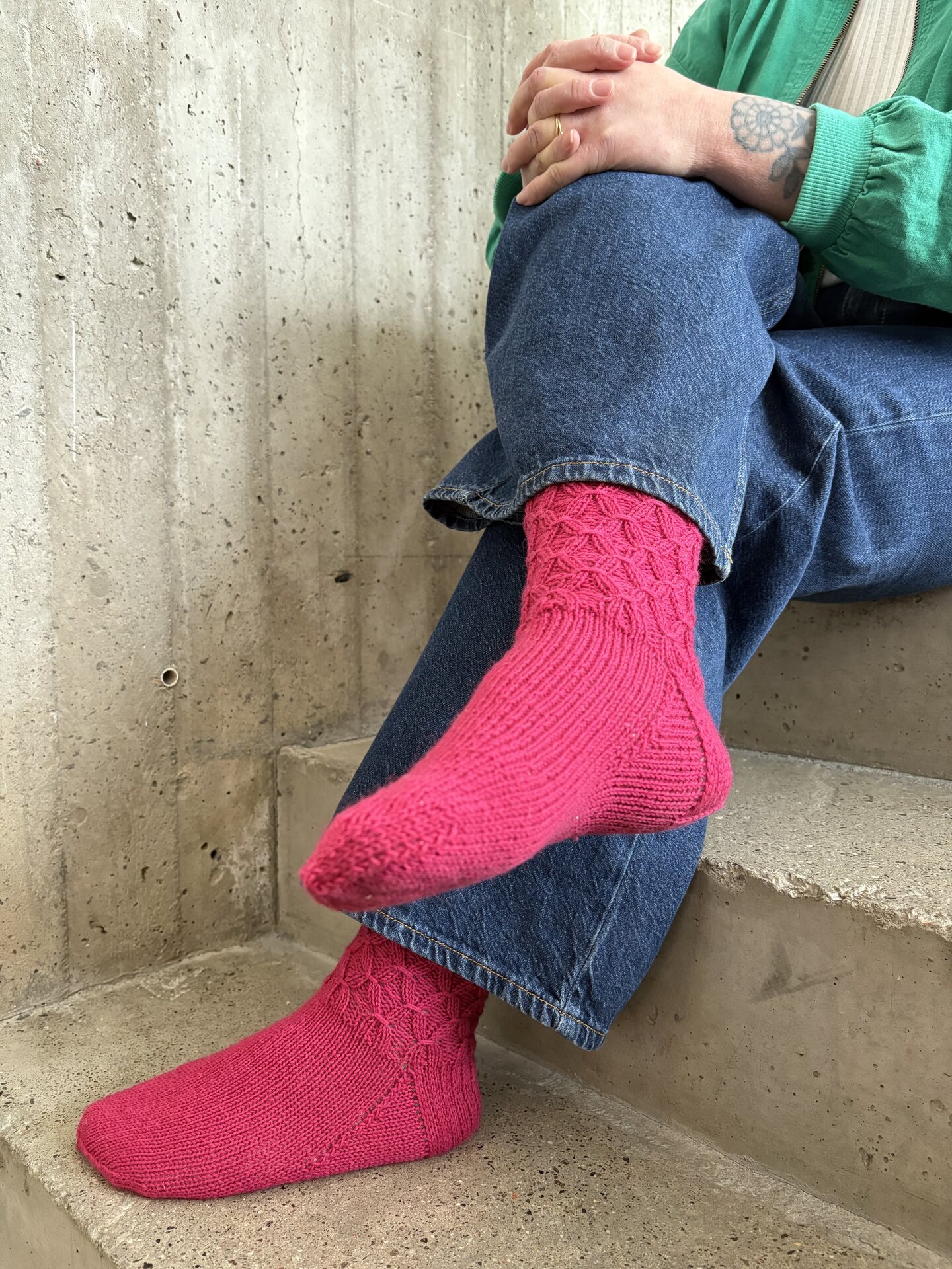 Jos sinulla on leveä jalka, tee vähemmän kavennuksia. Sovita. Sukan on tarkoitus olla tyköistuva niin, että mahtuu kenkään.