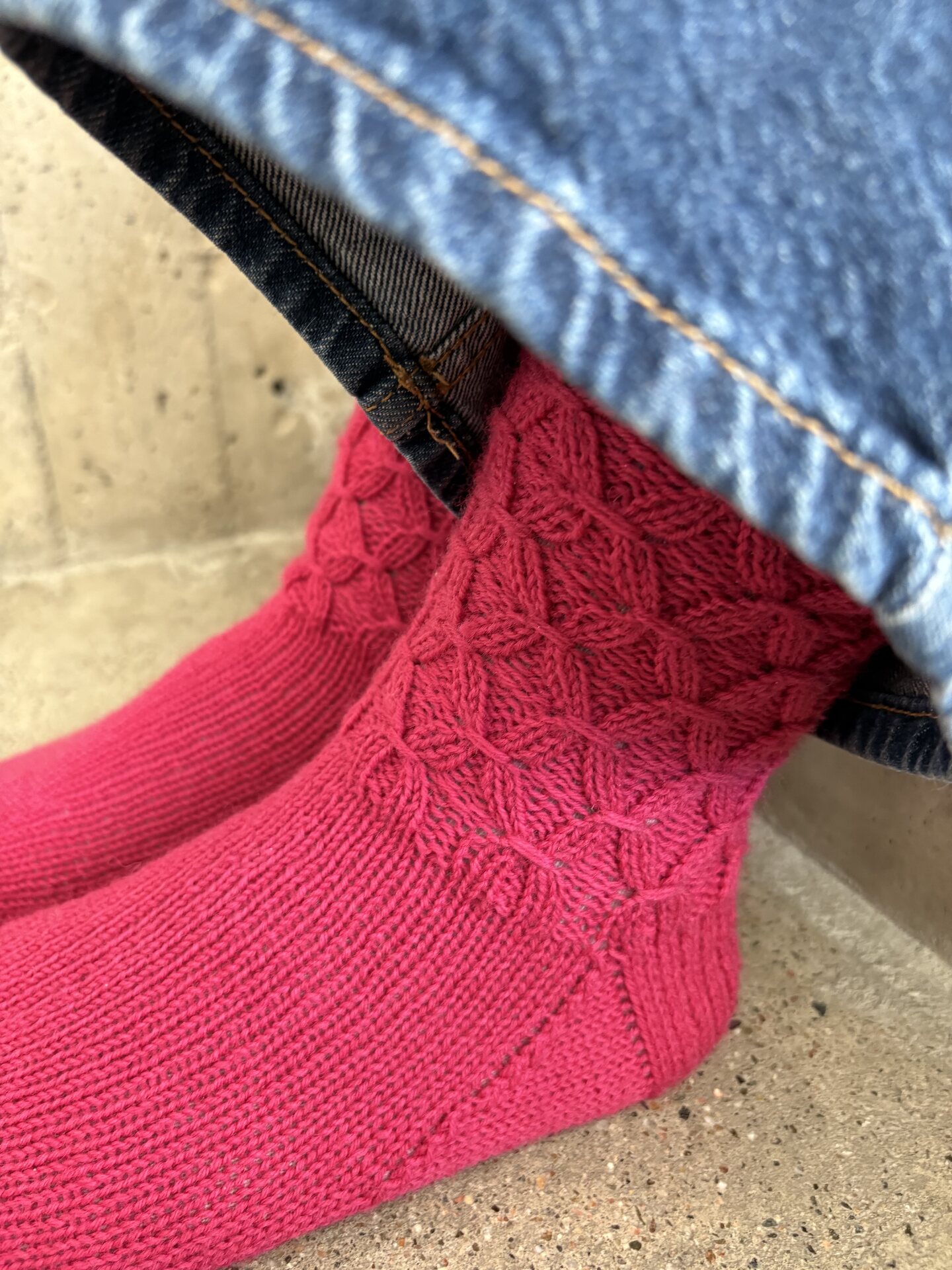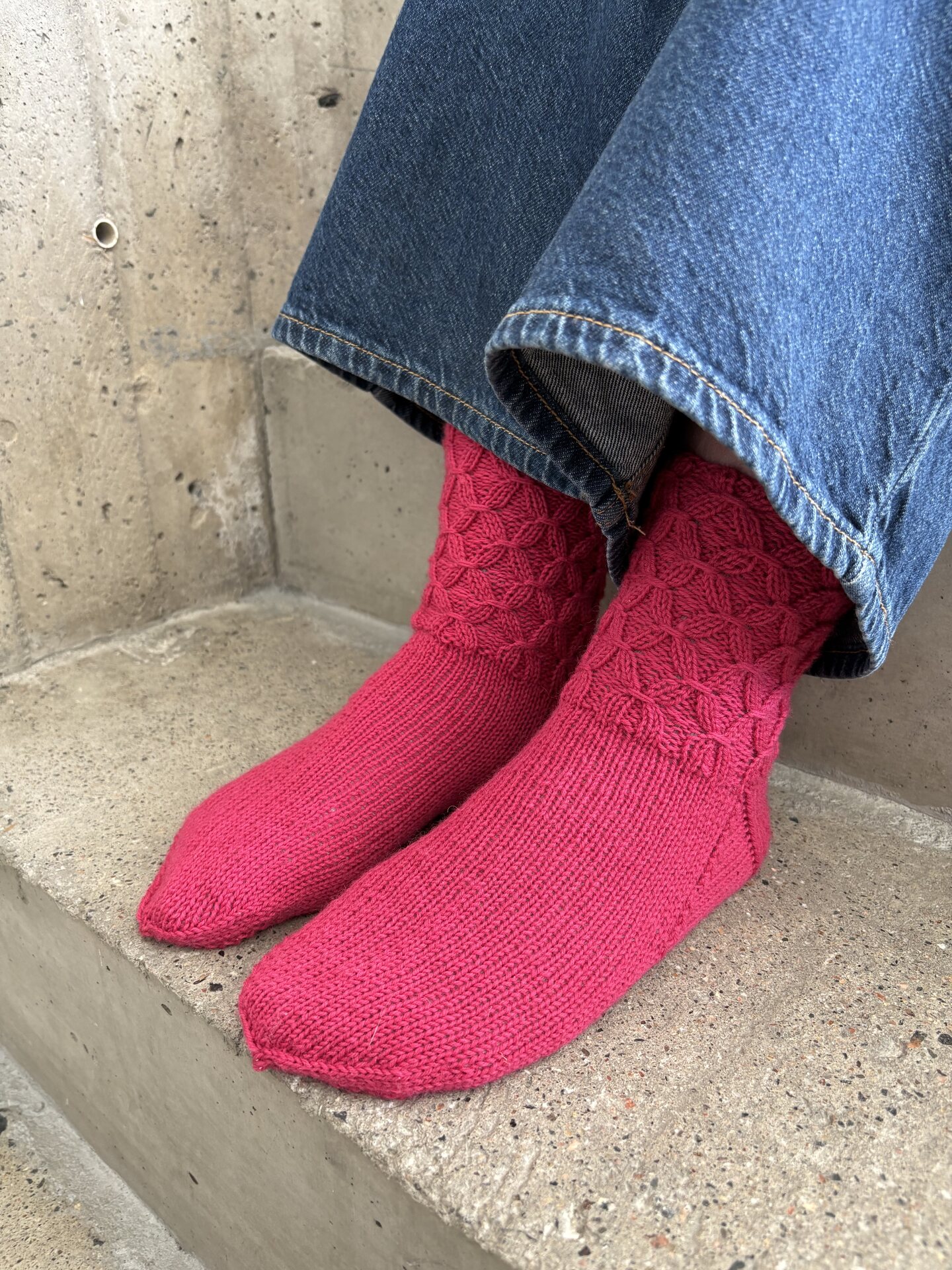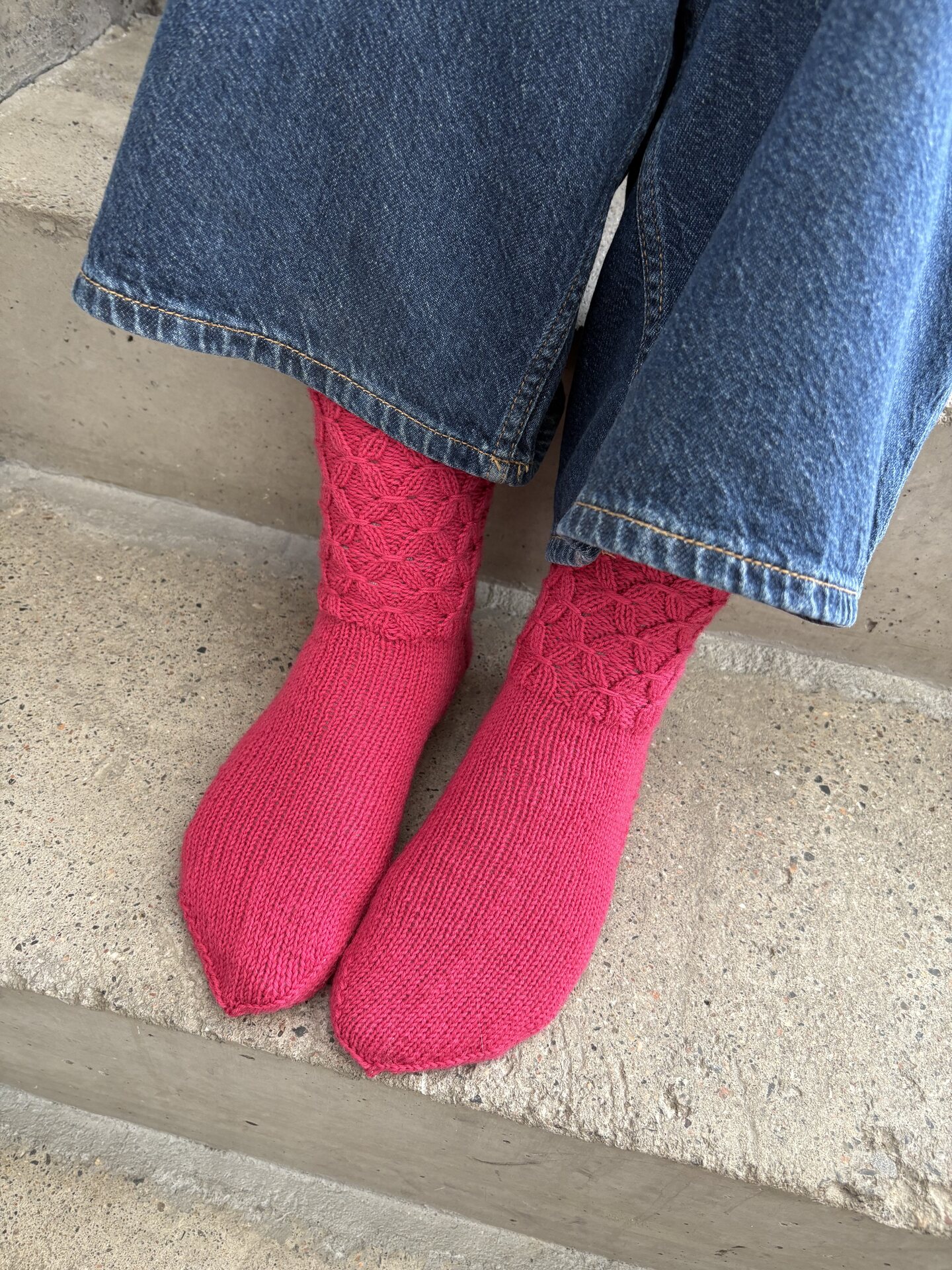 Jos sinulla on leveä jalka, tee vähemmän kavennuksia. Sovita. Sukan on tarkoitus olla tyköistuva niin, että mahtuu kenkään.