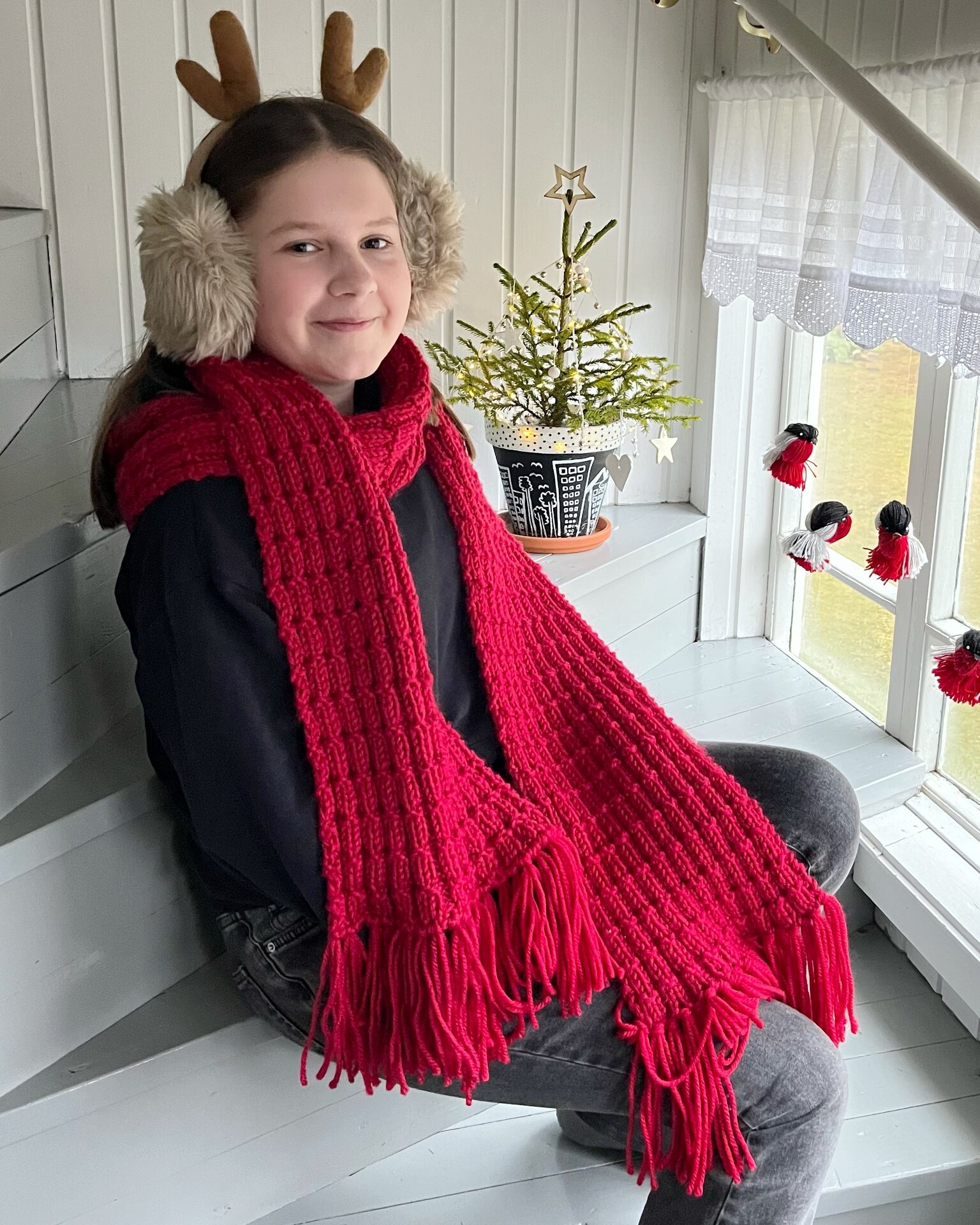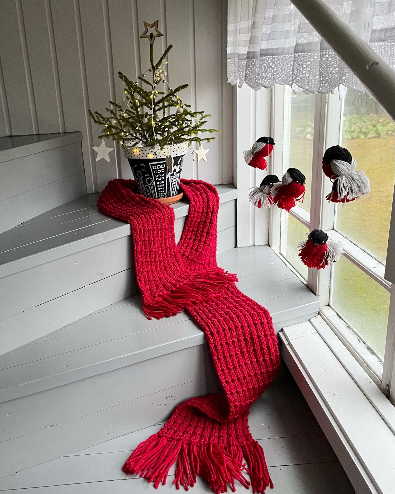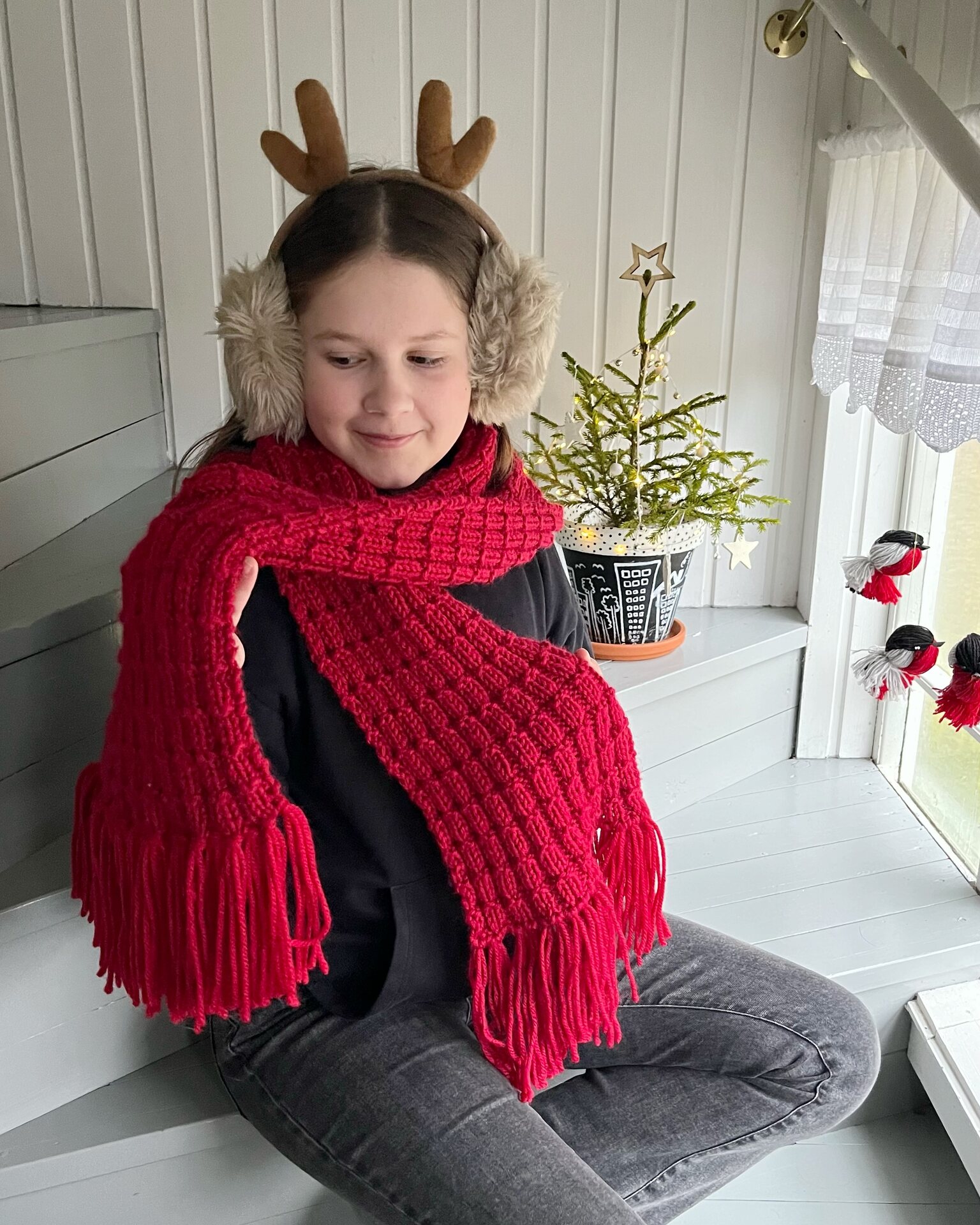 Kun hapsut on kiinnitetty, lämmin Karpalo-kaulahuivisi on valmis käytettäväksi!