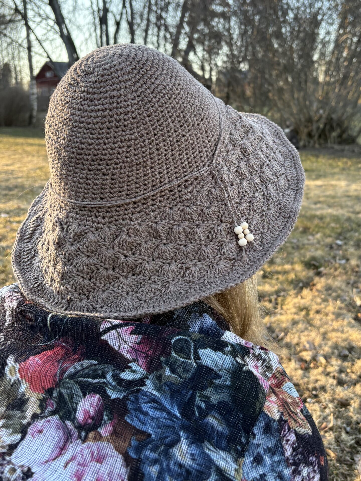 Sovita kupua ja voit venyttää hattua kuosiinsa. Työn korkeus aloituksesta on n. 15 cm.