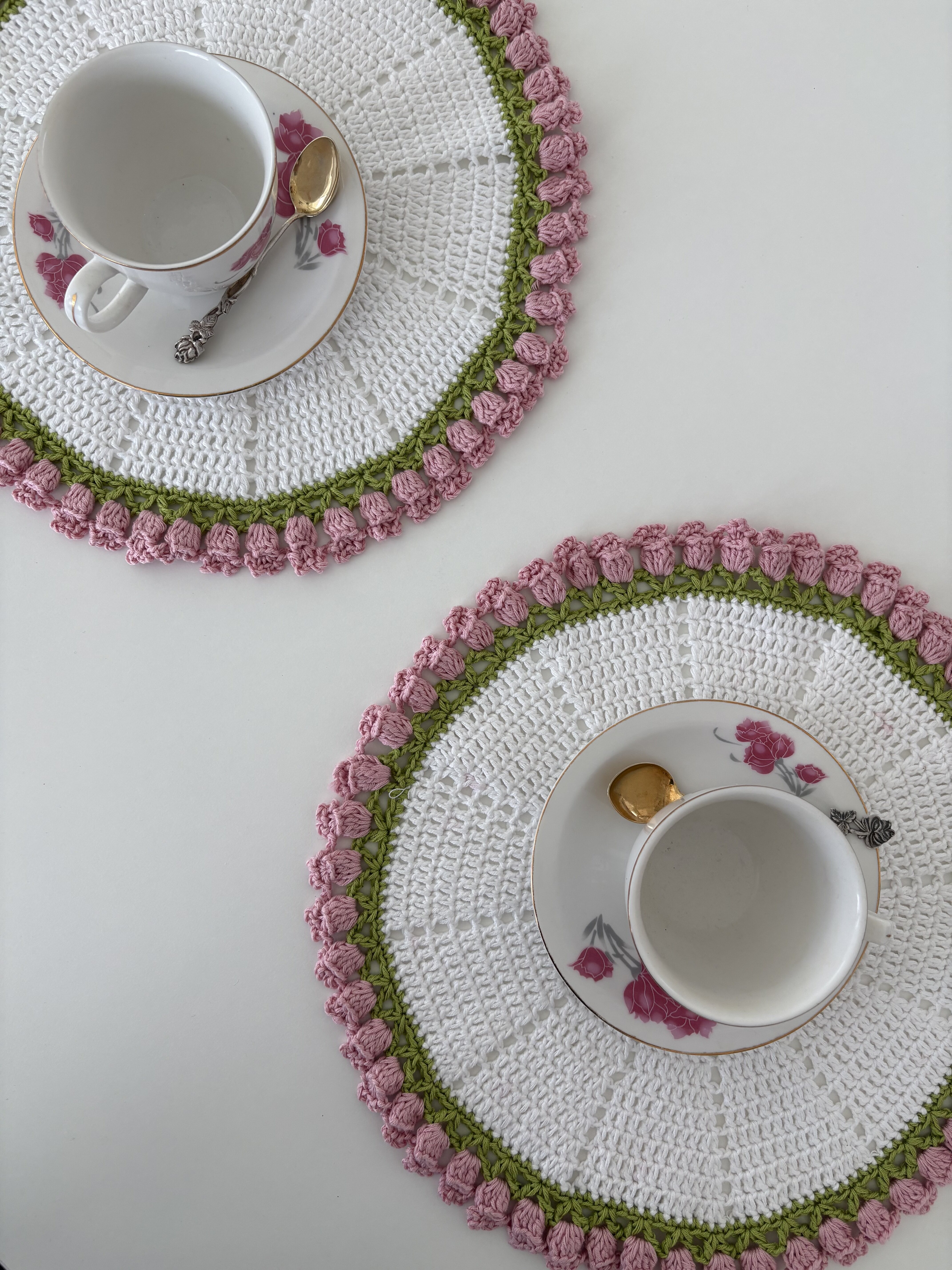 * virkkaa 6 p, 2 p samaan s, 1 kjs* toista*_* 11 kertaa. Sulje krs ps. (95p)