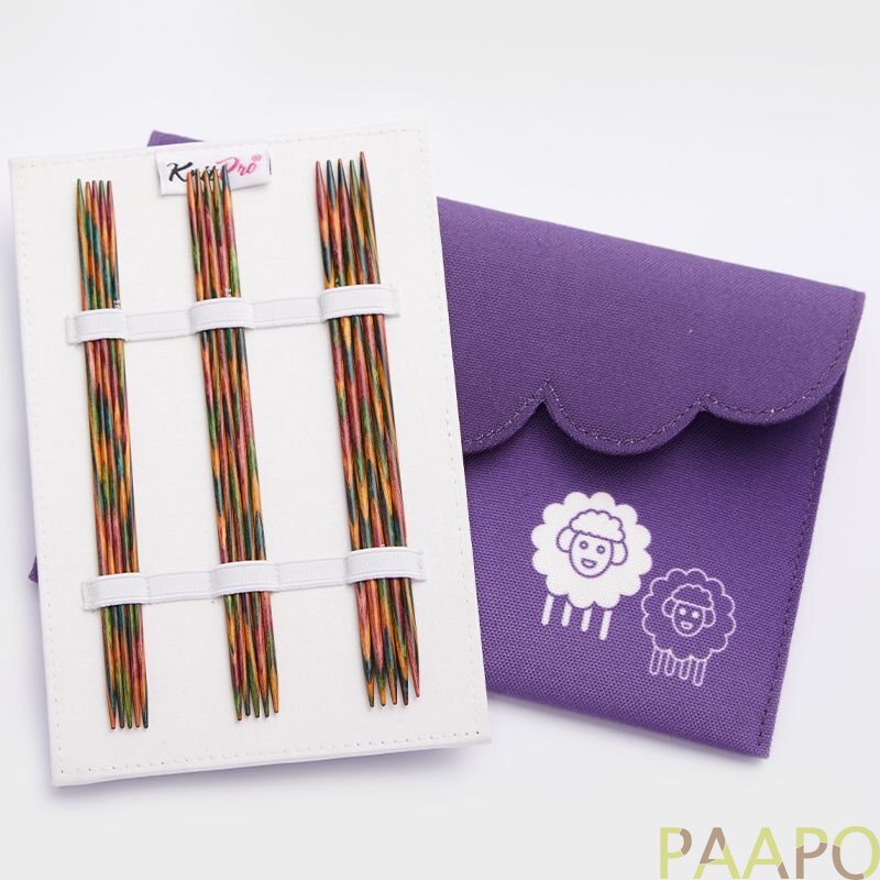 Laadukkaita KnitPron sukkapuikkoja lajitelma, jossa on 15 cm sukkapuikkoja viisi eri kokoa. Koot 2,0 mm - 3,0 mm sisältävät yhden varapuikon, eli yhtyeensä kuusi puikkoa/koko. Puikot on helppo säilyttää kätevässä painonapilla suljettavassa pussissa, jossa erilliset kotelot jokaiselle puikkokoolle. Ilahduttaa takuulla myös lahjana!
