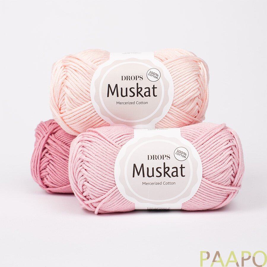 DROPS Muskat on laadukas puuvillalanka, joka on valmistettu pitkäkuituisesta egyptiläisestä merseroidusta puuvillasta. Se tuntuu sileältä ja siinä on hienovarainen kiilto, joka tuo neuleeseen viimeistellyn ilmeen.