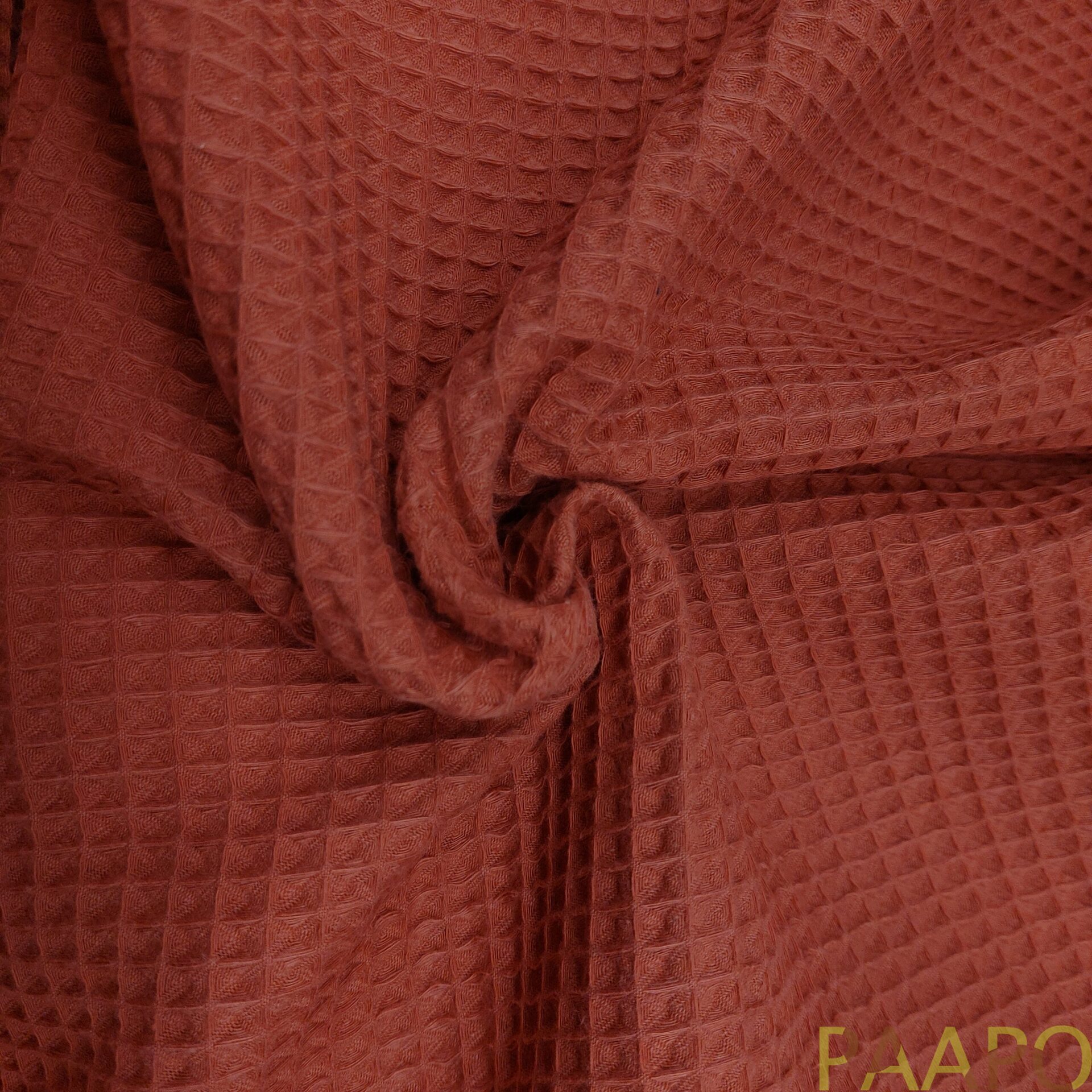 Waffle fabric is a woven fabric known for its comfortable and thick quality. The fabric feels even fuller after washing, so we recommend washing it before use due to shrinkage. Waffle fabric is made from 100% cotton. This fabric gets its name from the waffle structure of the weave, which forms small squares or cubes on the surface of the fabric.