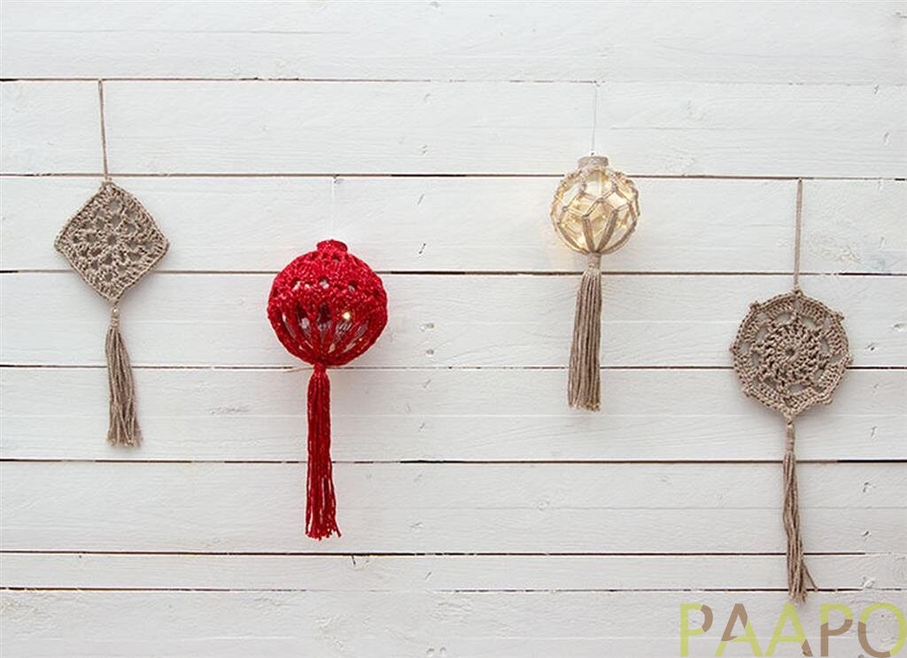 A gorgeous hanging LED glass ball that you can crochet, tie or knit a decorative cover over.