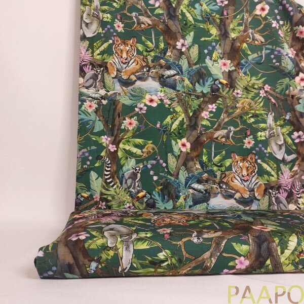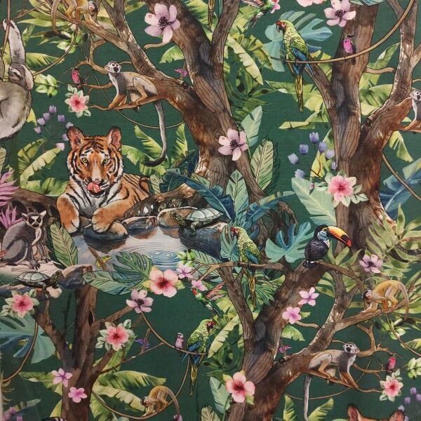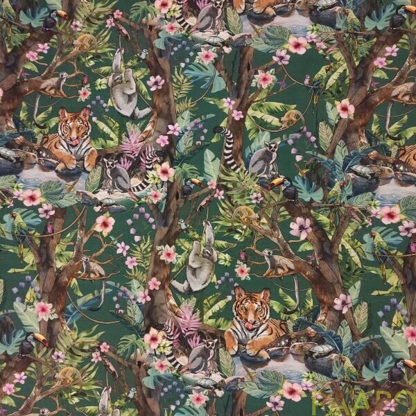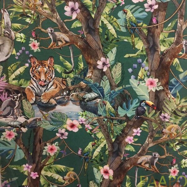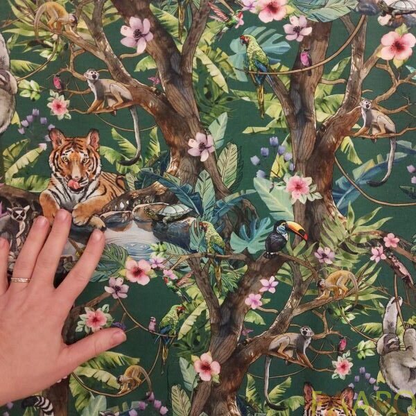 Heart of the Jungle takes you to the heart of a lush rainforest and the sources of nature's vitality. The fabric pulsates with the rhythm of a tropical forest – foliage, light, shadows and magnificent wildlife.
