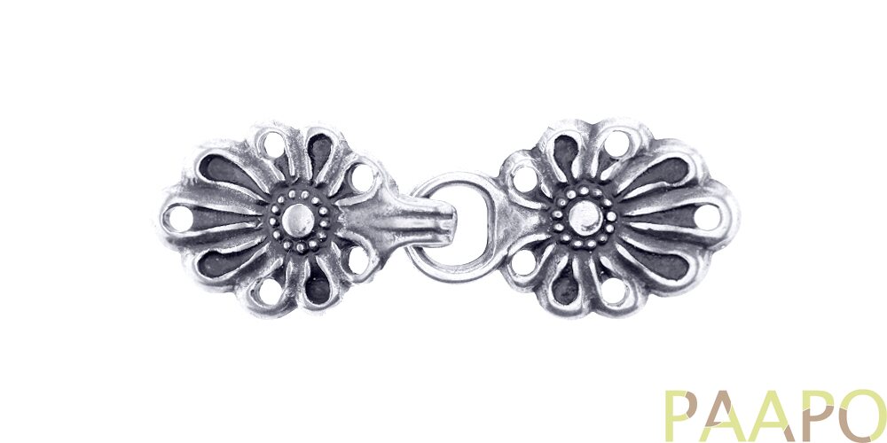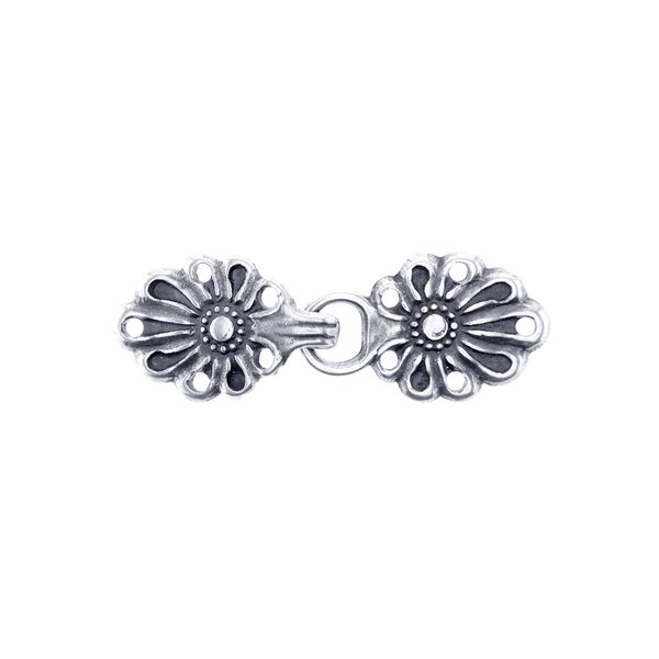 A beautiful decorative metal alloy fastener. Perfect for buttons on a knitted sweater.