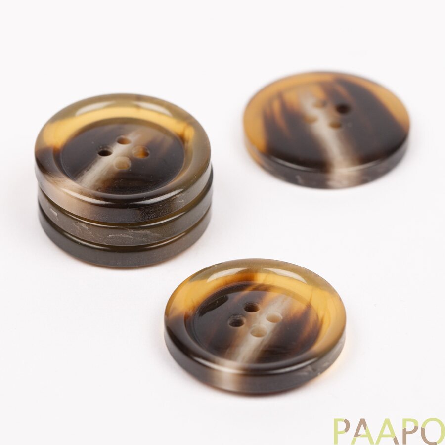 These buttons are made of durable polyester. The buttons feature a unique blend of dark and light brown tones that create a stunning tortoiseshell pattern. These buttons will make your knitting look classic and timeless.