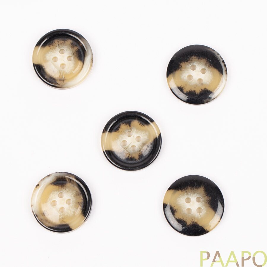 These buttons are made of durable polyester. The buttons feature a unique blend of dark and light brown tones that create a stunning tortoiseshell pattern. These buttons will make your knitting look classic and timeless.
