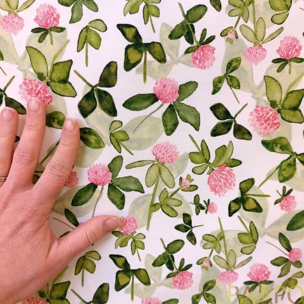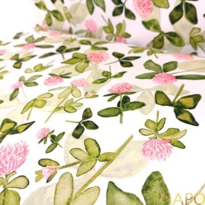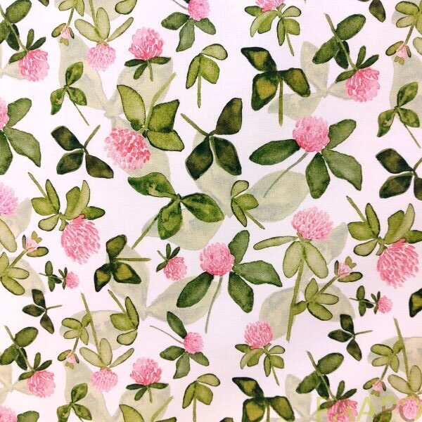 Digitally printed jersey with beautiful watercolor painted red clovers.