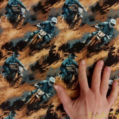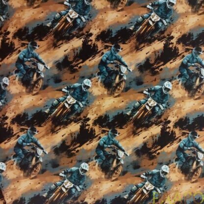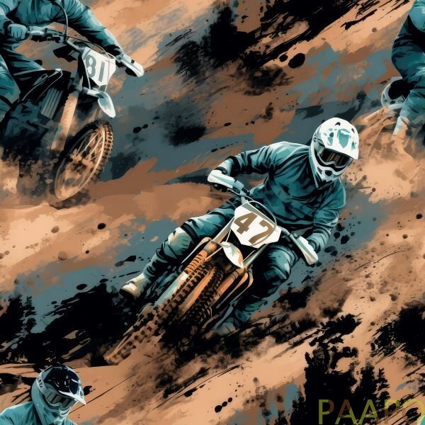 A motocross bike hurtles forward with mud splashing and furious speed. This jersey smells of two-stroke oil and adrenaline.