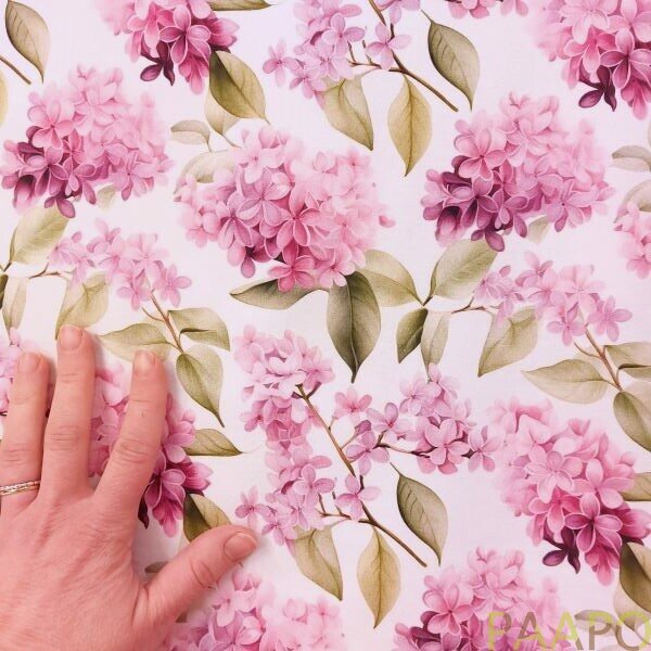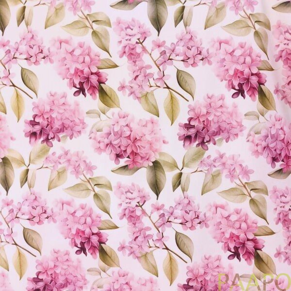 The charming floral pattern of the digitally printed jersey brings to mind the scent of early summer, blooming lilacs.