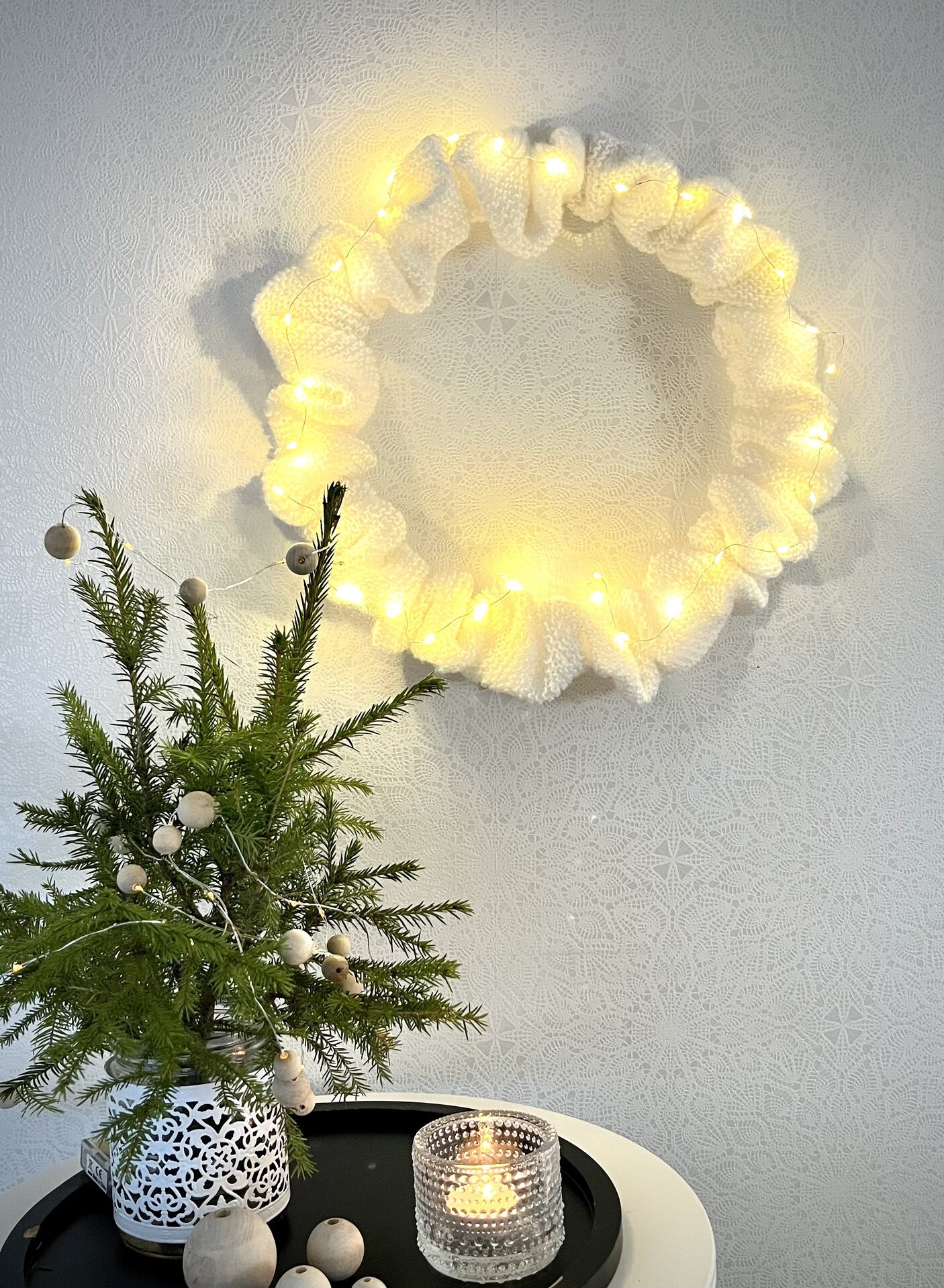 Viimeistele kranssi kietomalla LED-valonauha sen ympärille.