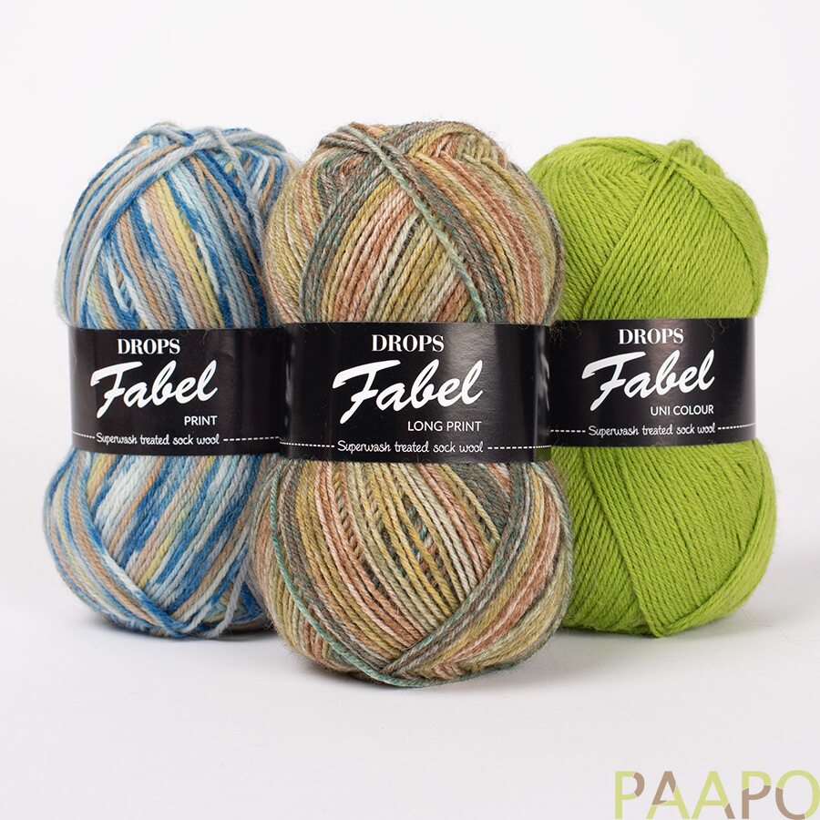 DROPS Fabel on ohut mutta kestävä sukkalanka, joka sopii hyvin sekä sukkiin että muihin kevyisiin neuleisiin. Hienosta villasta kehrätty lanka tuntuu miellyttävältä ja soveltuu myös vauvojen neuleisiin.