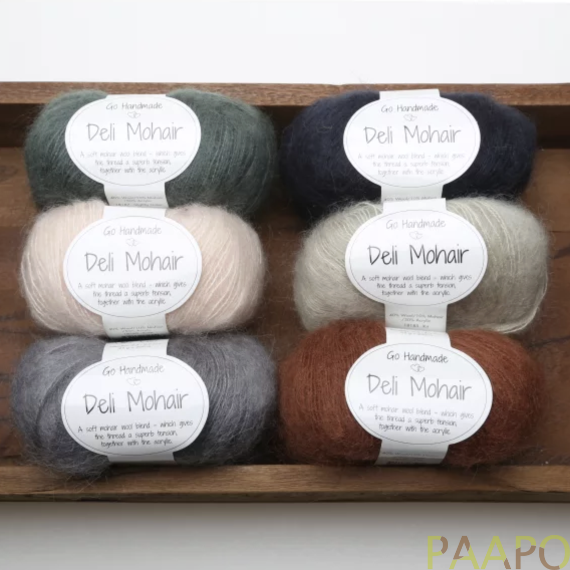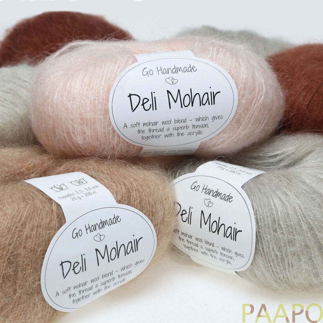 Deli Mohair on ylellinen sekoitelanka, jossa yhdistyvät villa, mohair ja akryyli. Se tuntuu pehmeältä ja kevyeltä, mutta säilyttää hyvin muotonsa ja kestää käyttöä.