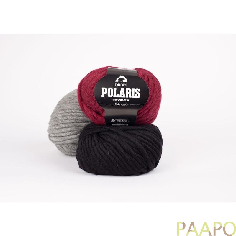 DROPS Polaris on 1-säikeinen, paksu villalanka, joka sopii erityisesti suuriin ja nopeasti valmistuviin neuleisiin. Se on kehrätty samasta pehmeästä villasta kuin DROPS Snow ja tuntuu luonnolliselta ja lämpimältä käytössä.