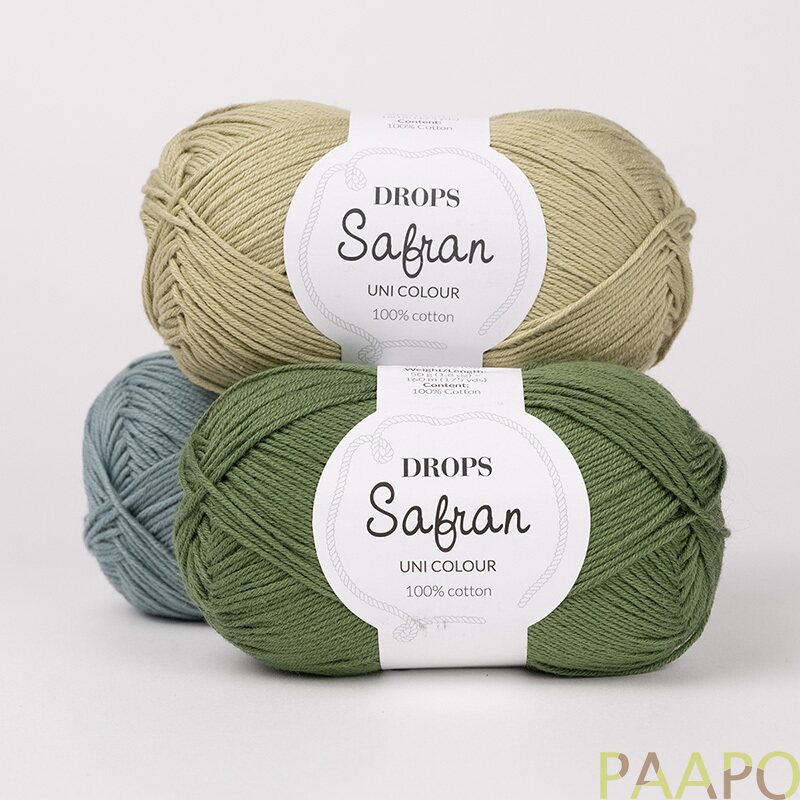 DROPS Safran on laadukas puuvillalanka, joka on valmistettu pitkistä egyptiläisistä puuvillakuiduista. Sen rakenne tekee langasta kestävän ja antaa neulepinnalle siistin ja kauniin ilmeen.