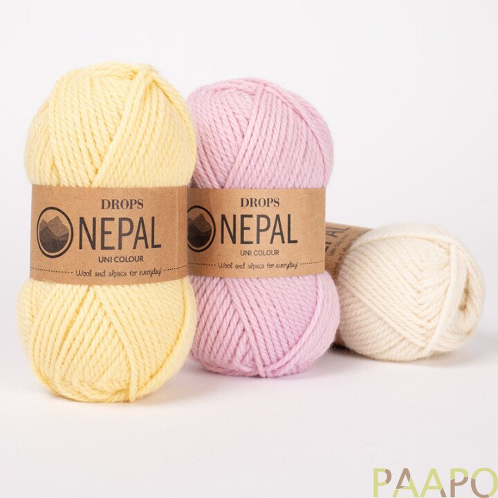 DROPS Nepal on paksuhko ja miellyttävän pehmeä luksuslanka, jossa yhdistyy alpakan pehmeys ja villan kestävyys. Se sopii hyvin neuleisiin ja virkkaukseen, joissa halutaan luonnollinen ja hieman eläväpintainen lopputulos.