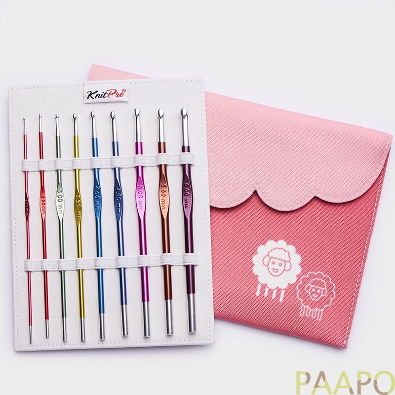 Zing virkkuukoukkusetti sisältää 9 erikokoista kauniin väristä virkkuukoukkua. Koukut pysyvät hyvässä järjestyksessä tyylikkäässä rasiassa. Kevyt ja sileäpintainen koukku on erittäin miellyttävä kädessä. Muotoiltu koukku helpottaa virkkaamista. Setti sisältää seuraavat koot: 2.00 mm, 2.50 mm, 3.00 mm 3.50 mm, 4.00 mm, 4.50 mm, 5.00 mm, 5.50 mm ja 6.00 mm