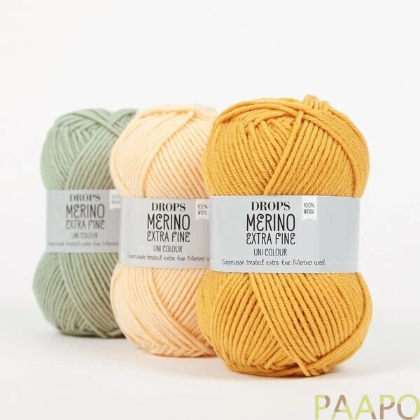 DROPS Merino Extra Fine on miellyttävän pehmeä merinovillalanka, joka tuntuu ihoa vasten mukavalta ja sopii hyvin monenlaisiin neuleisiin. Se on suosittu valinta erityisesti vauvojen ja lasten vaatteisiin, mutta toimii erinomaisesti myös aikuisille tarkoitetuissa neuleissa.