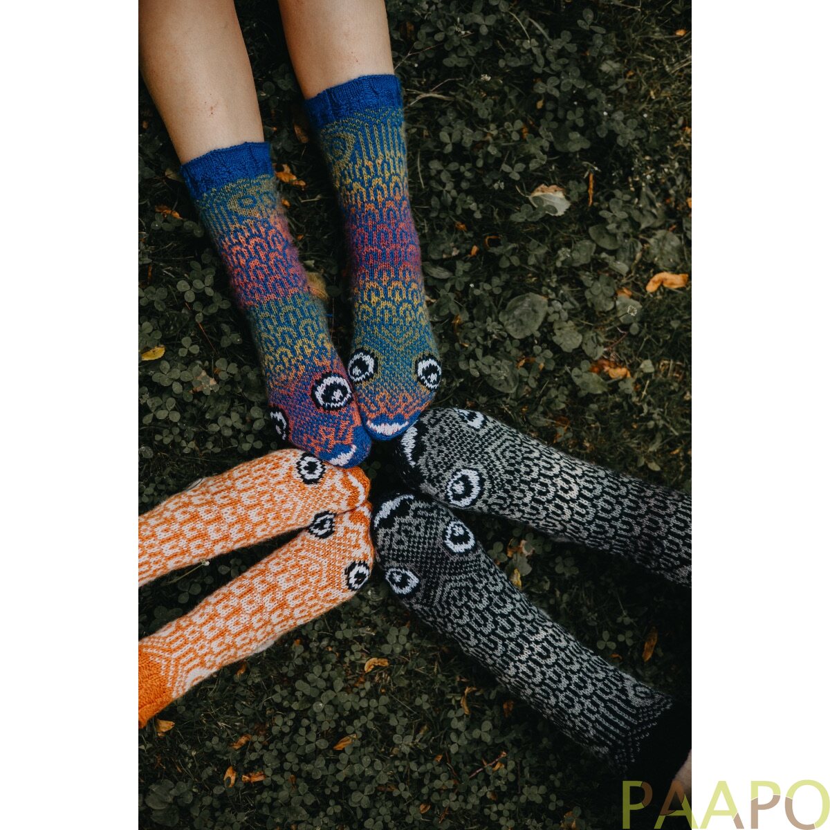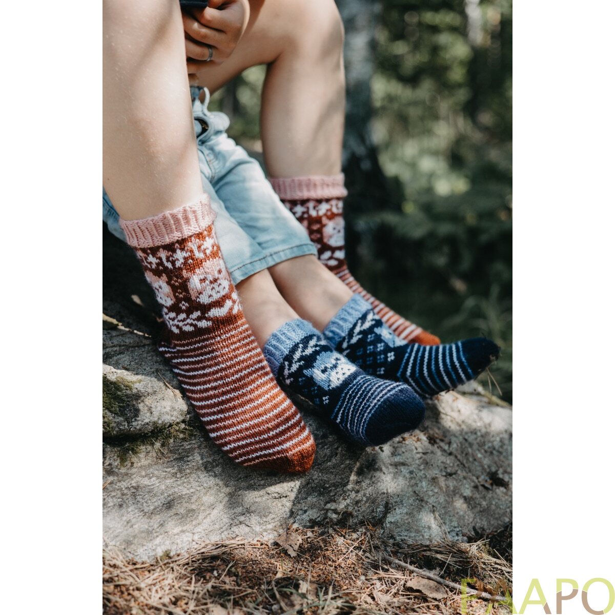 Viiden eri suunnittelijan luomat leikkisät aiheet ovat takuulla monenlaisen sukankäyttäjän mieleen, ja pääsetkin neulomaan muun muassa mörköjä, omppuja ja tähdenlentoja.