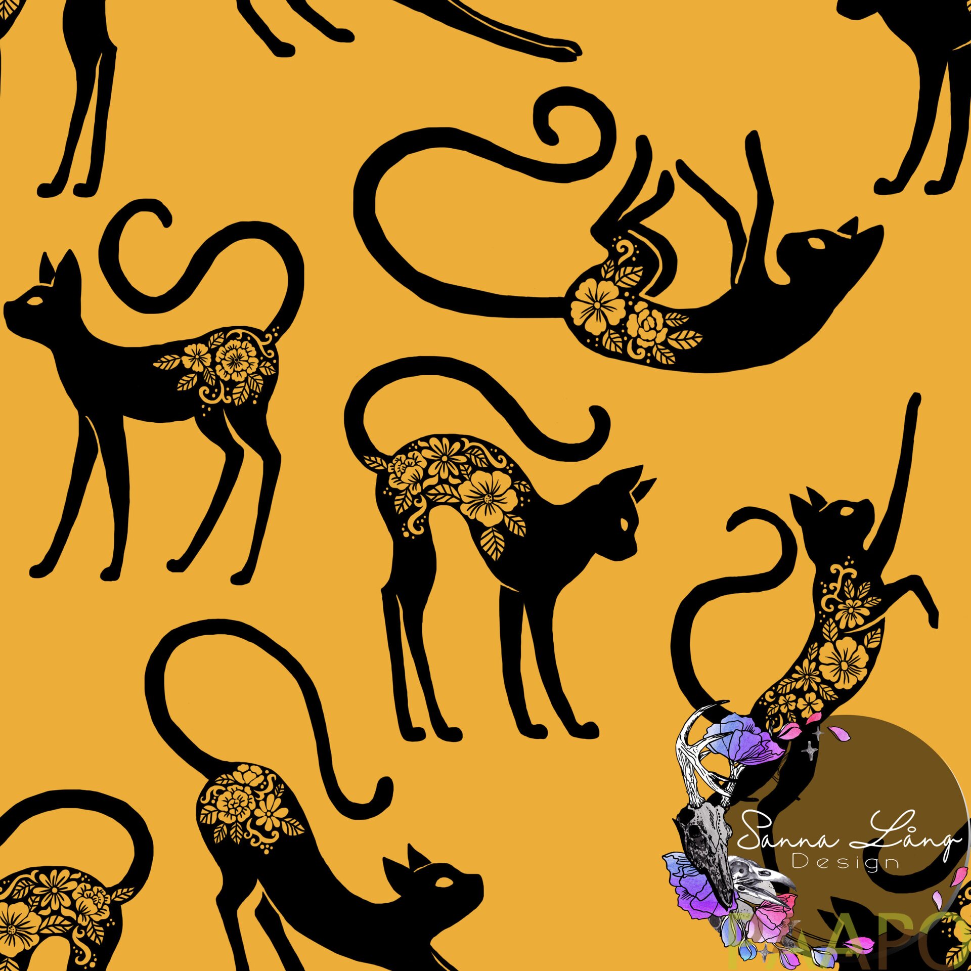 Omantuotannon puuvilla-elastan trikoo kangas. Kissat ovat aina niin söpöjö , miau