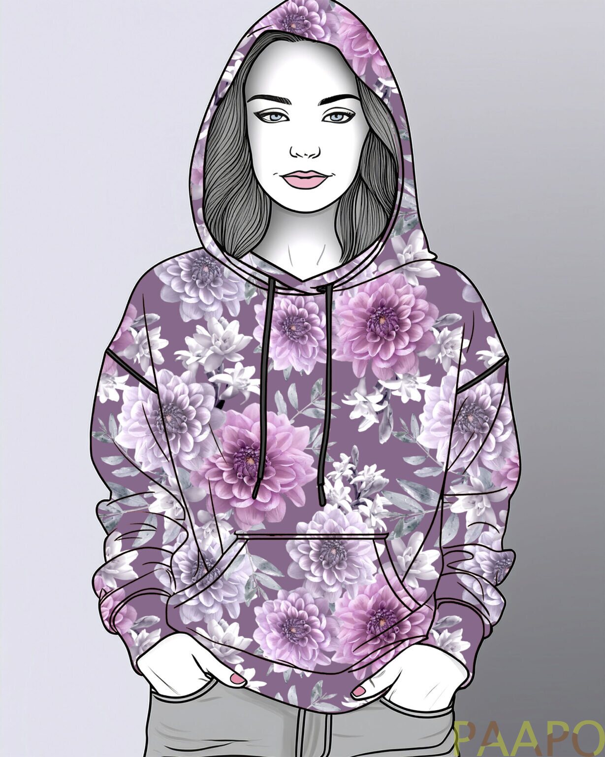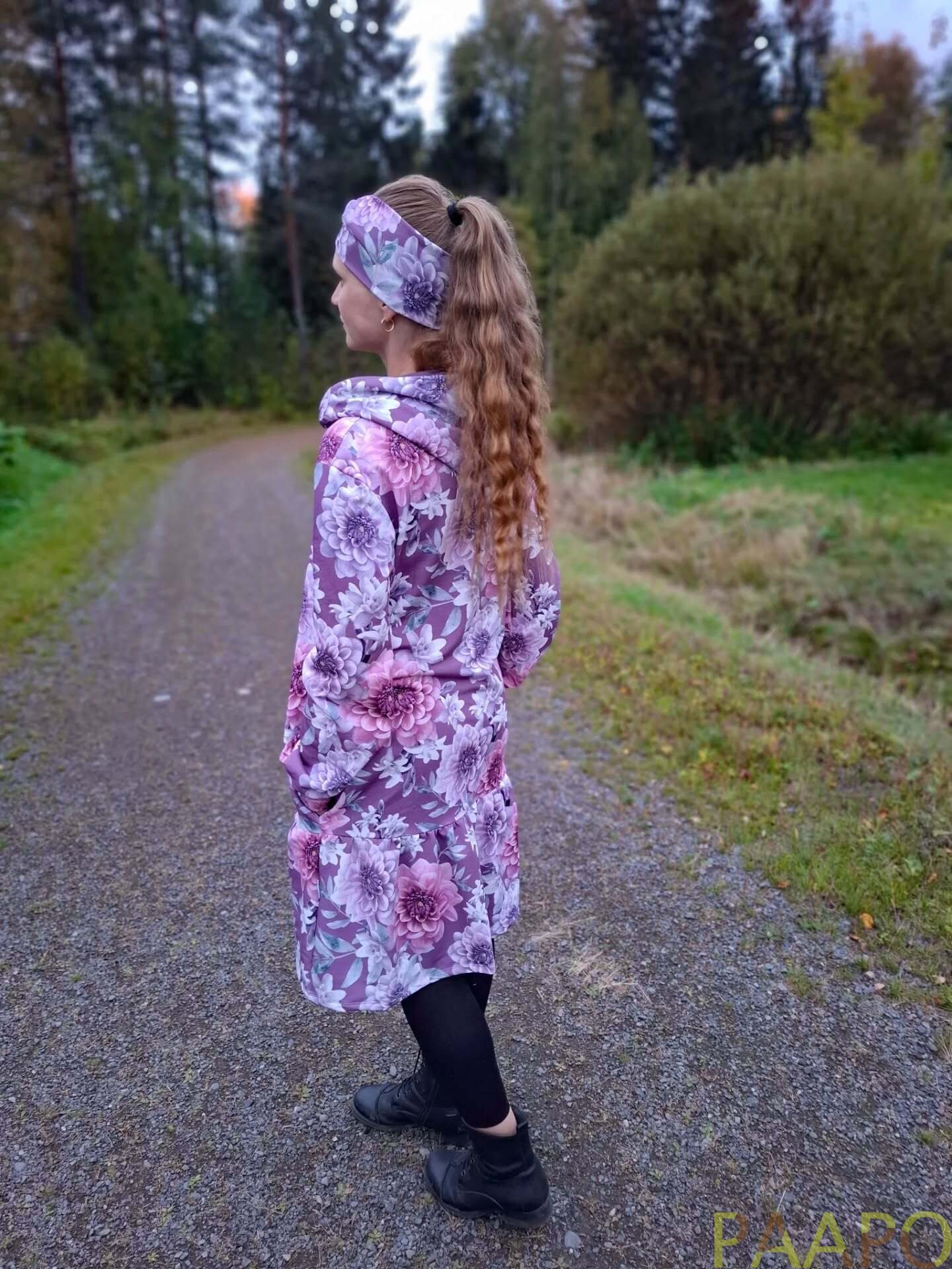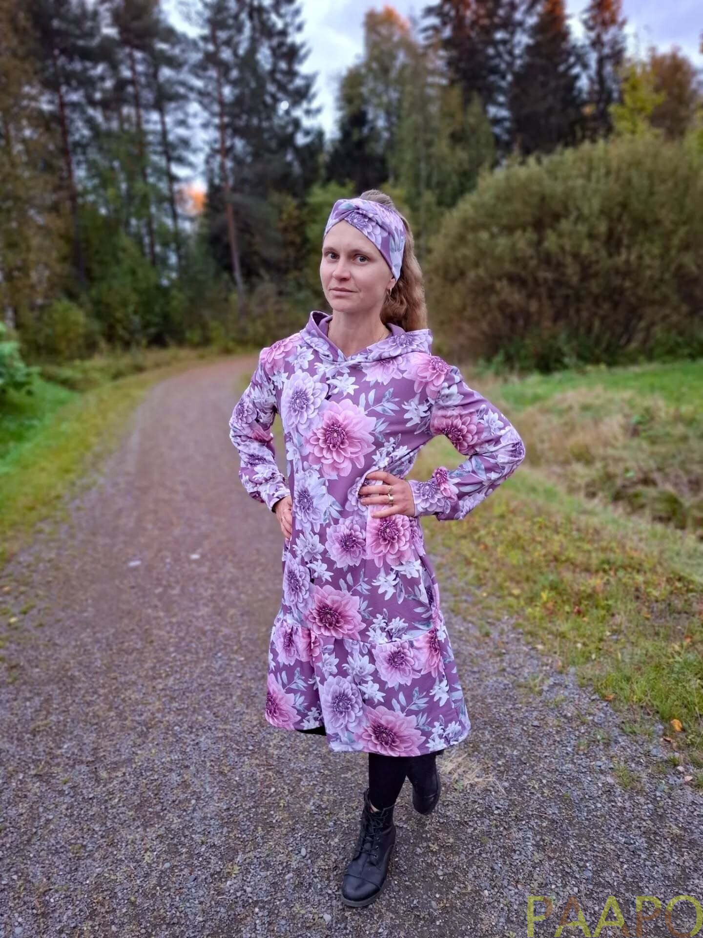 Laaduaks omantuotannon puuvilla elastan trikookangas. Upa kukkakuosi Tiina, tummapinkki