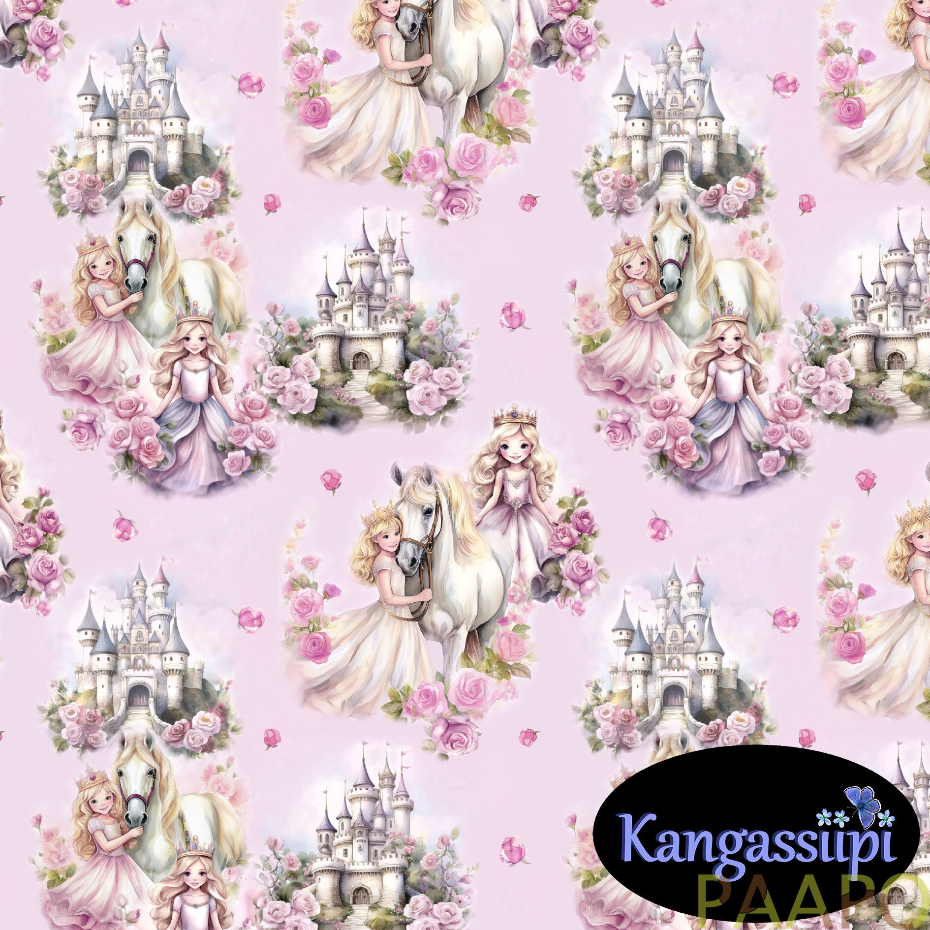 Laaduaks omantuotannon puuvilla elastan trikookangas. Ihania prinsessoja ja niiden ympäristöä