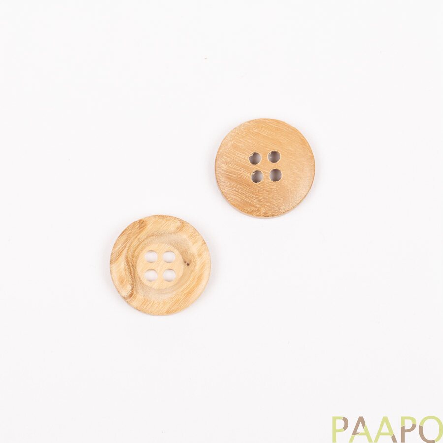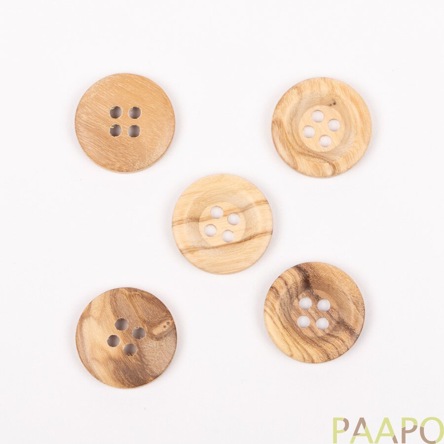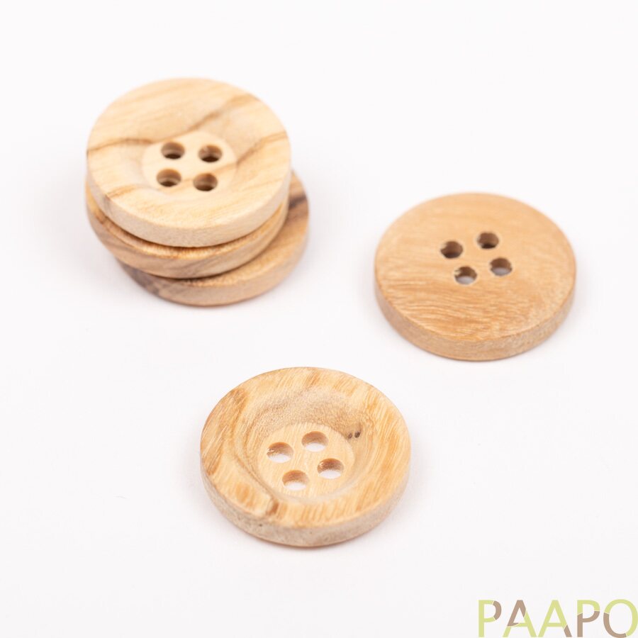 Nämä napit on valmistettu kestävästä oliivipuusta ja niissä on pyöristetty pehmeä reuna ja sileä pinta. Nämä napit ovat oiva valinta, kun haluat että neuletyöstäsi tulee rustiikkinen ja ajaton. Napit on valmistettu luonnollisesta puusta, joten niissä esiintyy pieniä värin ja tekstuurin variaatioita.