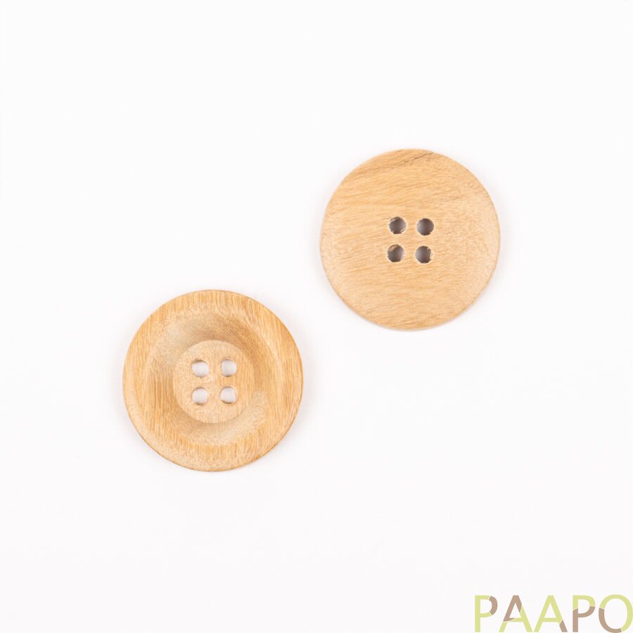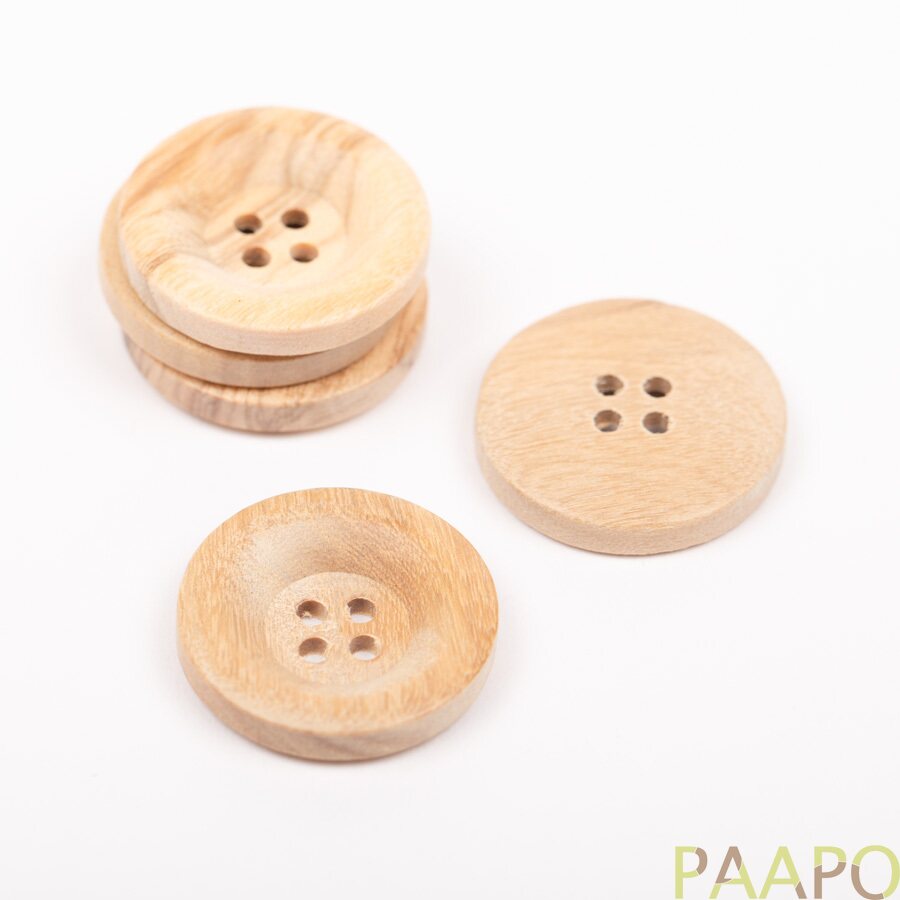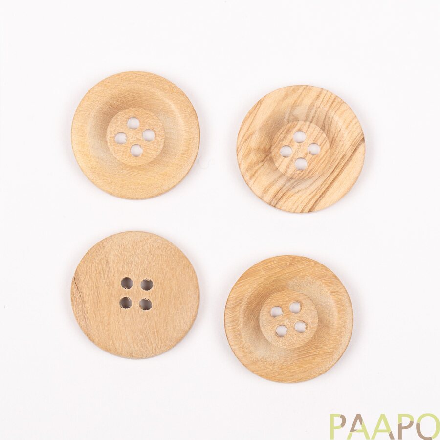 Pyöreät oliivipuunapit, joissa on pehmeä reuna.