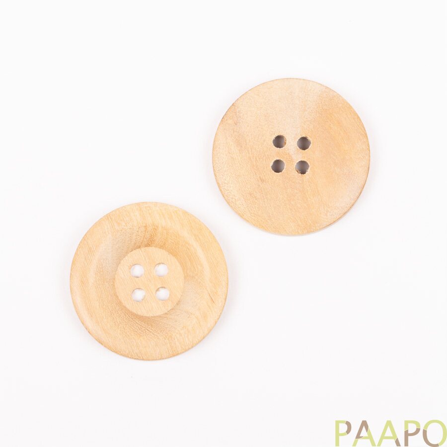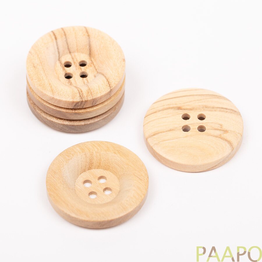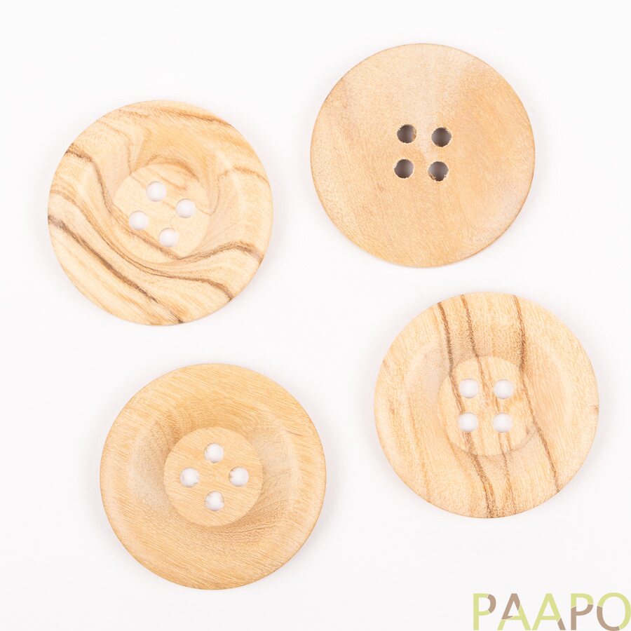 Pyöreät oliivipuunapit, joissa on pehmeä reuna.