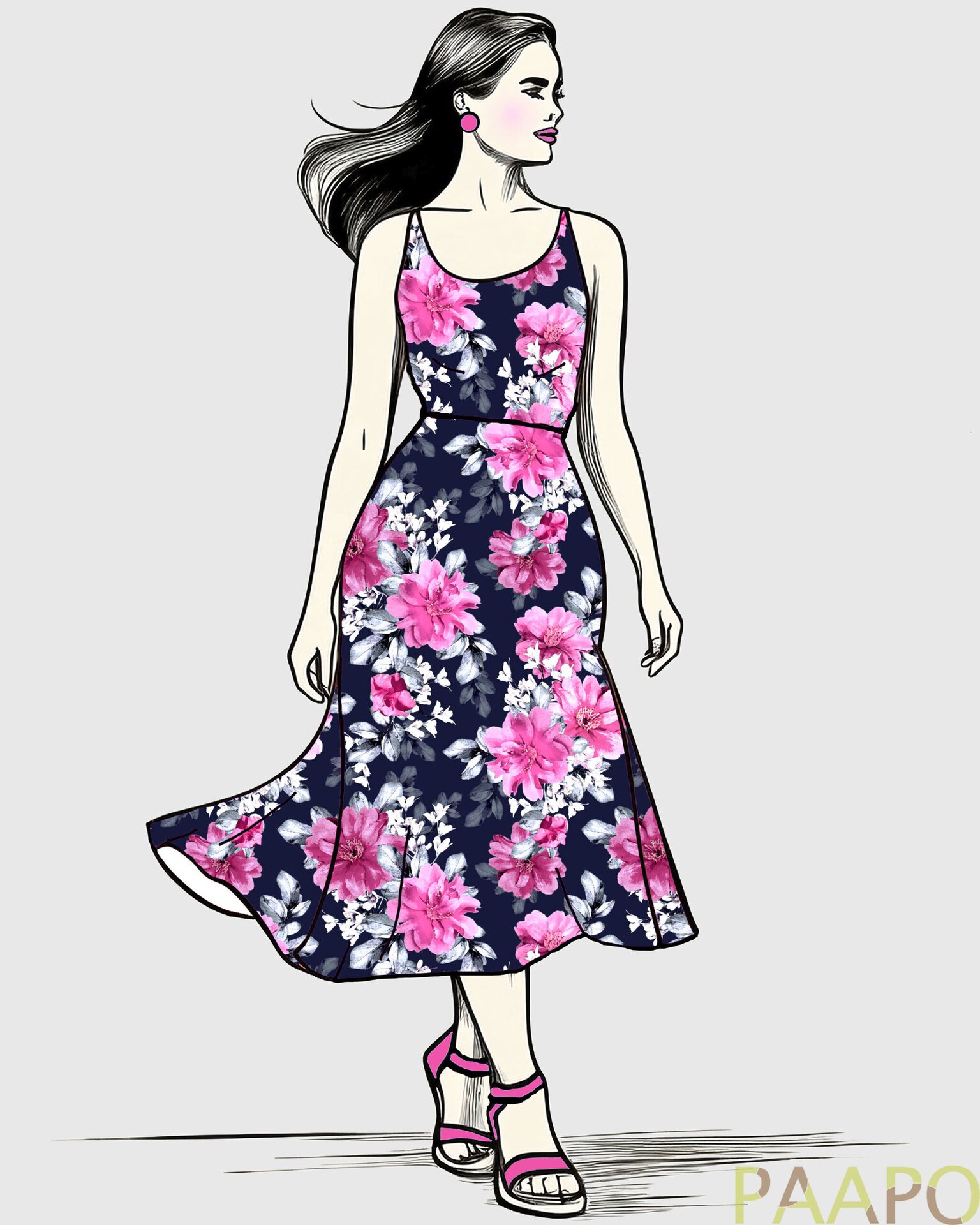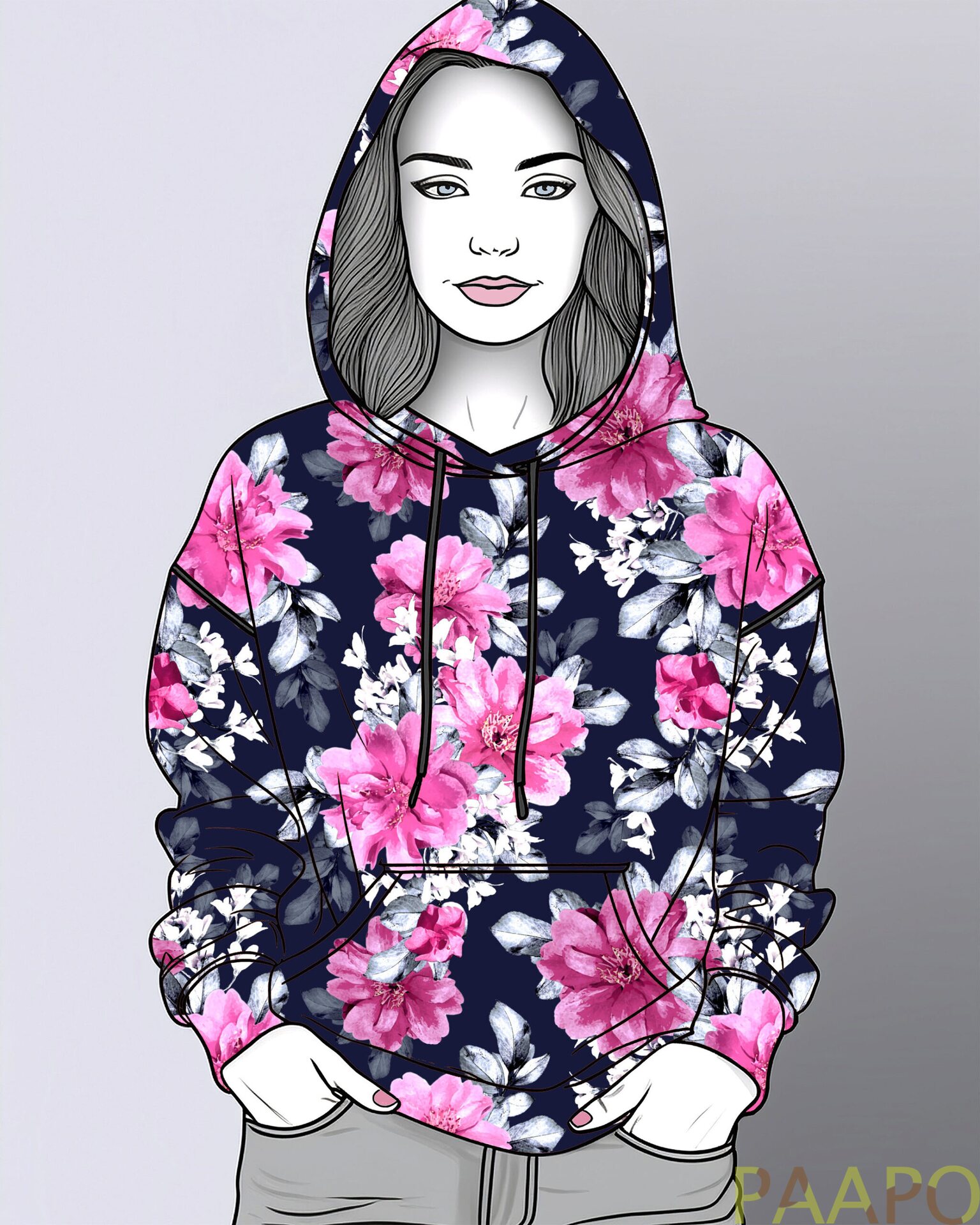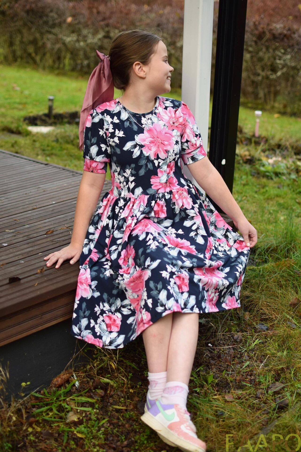 Laaduaks Uniikkien omantuotannon puuvilla elastan trikookangas. Upeaa, uutta kukkakuosia, Serafiina!