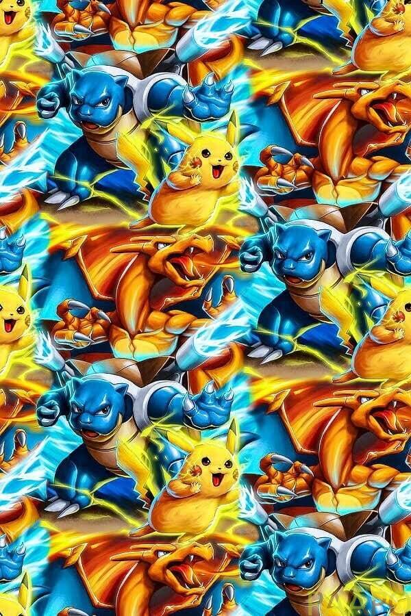 Digital puuvilla-elastan trikoo. Pokemon!!