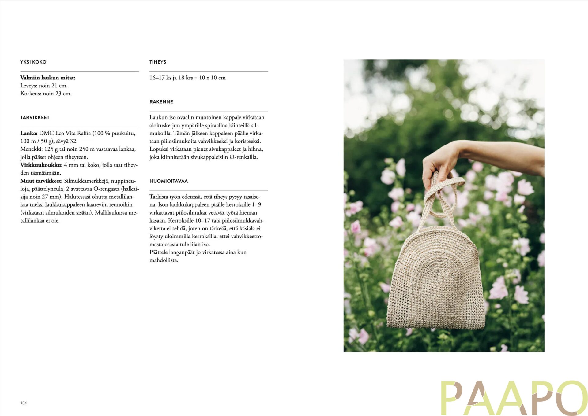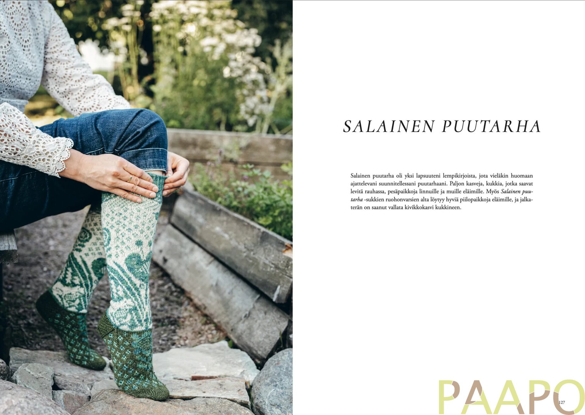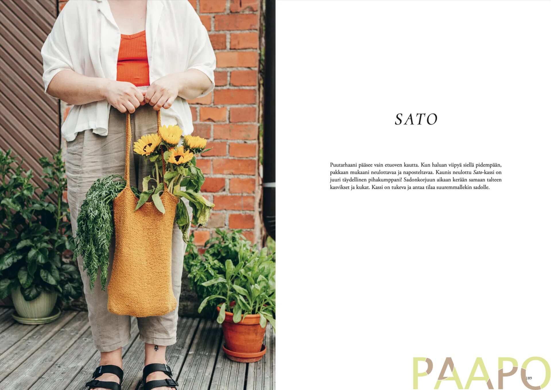 Tämän neulekirjan juuret ovat syvällä mullassa, lumoavassa kasvun ihmeessä, sadonkorjuun palkitsevuudessa – puutarha-elämässä. Kirjan neljä suunnittelijaa ovat paitsi kokeneita neulemaailman ammattilaisia myös intohimoisia viherpeukaloita. Puutarhaharrastuksensa innoittamina he loivat omat mallistonsa: syntyi yhteensä 20 luonnon väriloistoa juhlivaa neule- ja virkkausohjetta. Mukana on vaatteita ja asusteita jokaiseen vuodenaikaan sekä kaksi mallia lapsille.