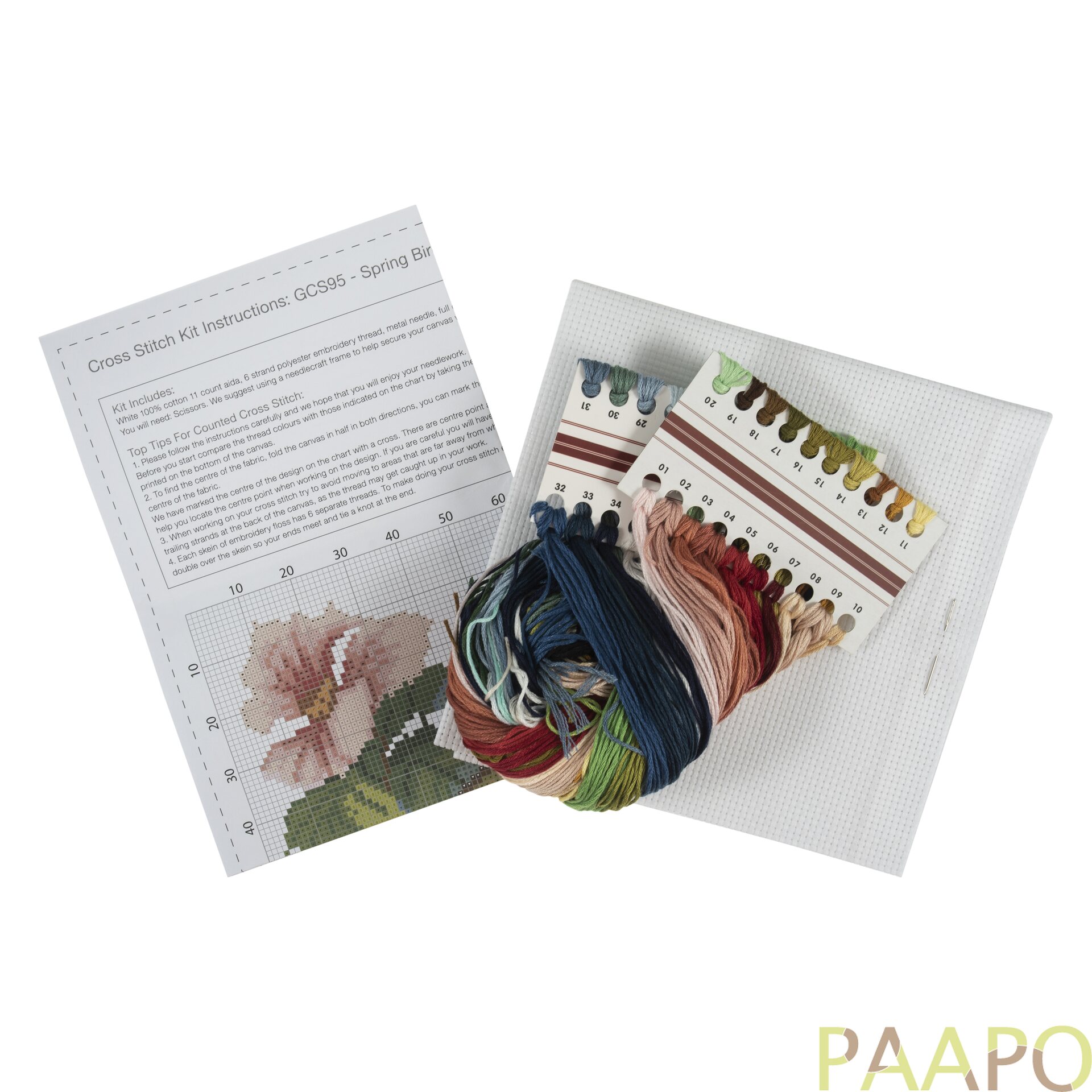 Täydellinen ristipistopakkaus aloittelijalle - Tämä upea ristipistopakkaus sisältää valkoista puuvillaista aida 11 ristipistokangasta, 6-säikeisiä kirjontalankoja, neulan ja värikoodatut ohjeet kielillä engalanninkielellä.