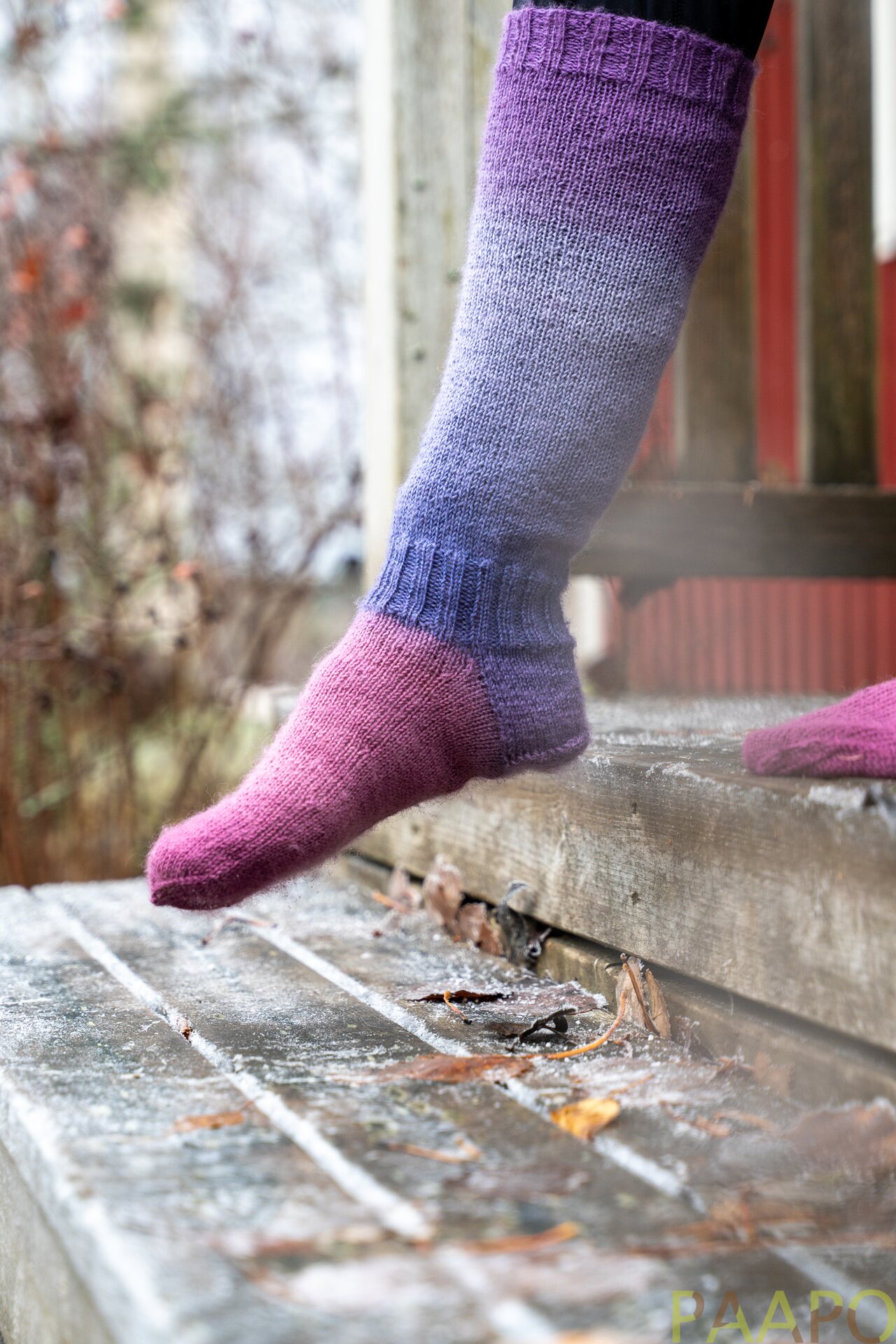 Tästä kauniista langasta neulot ihanat kenkäänmahtuvat villasukat.