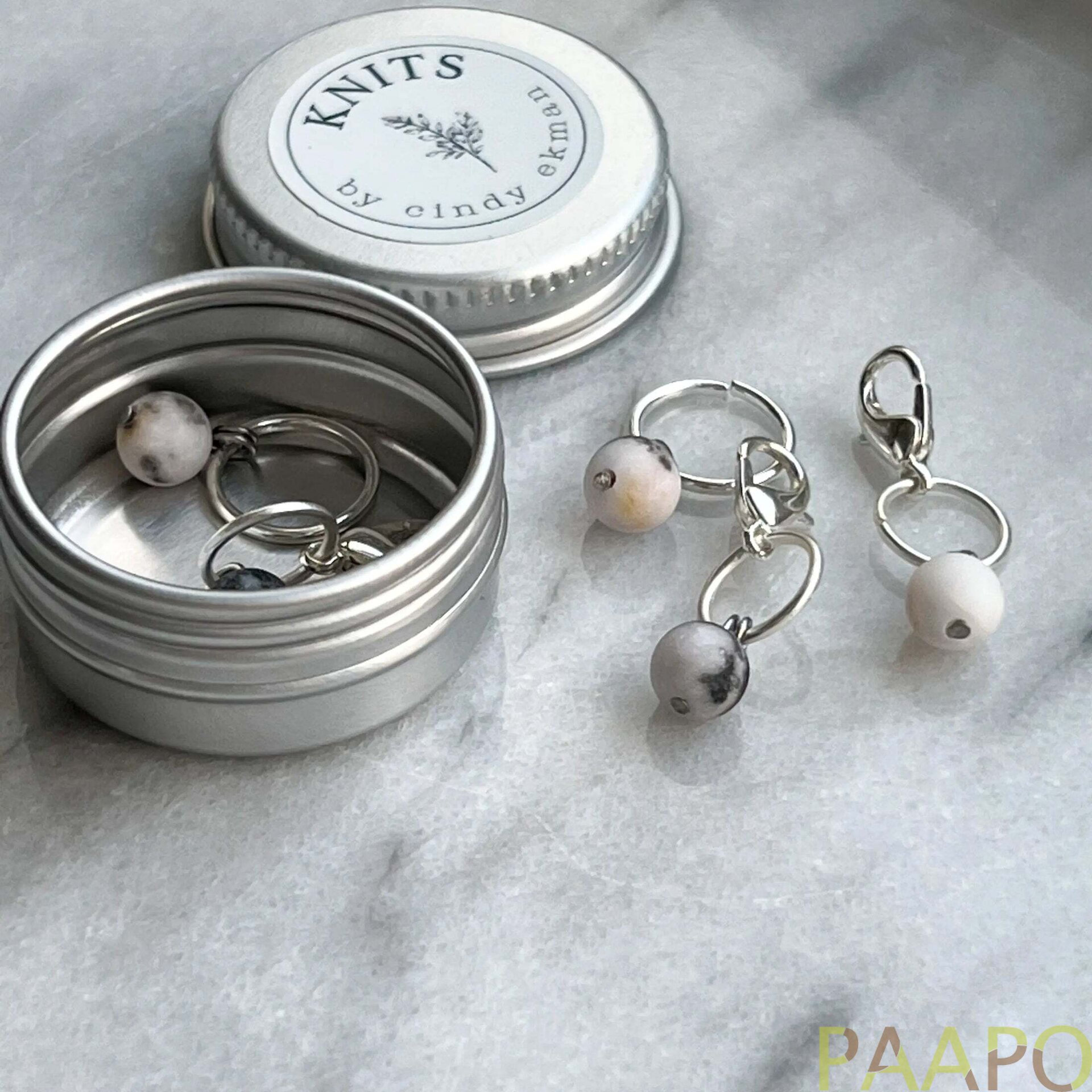 Kauniit silmukkamerkit rasiassa on kuin koruja.